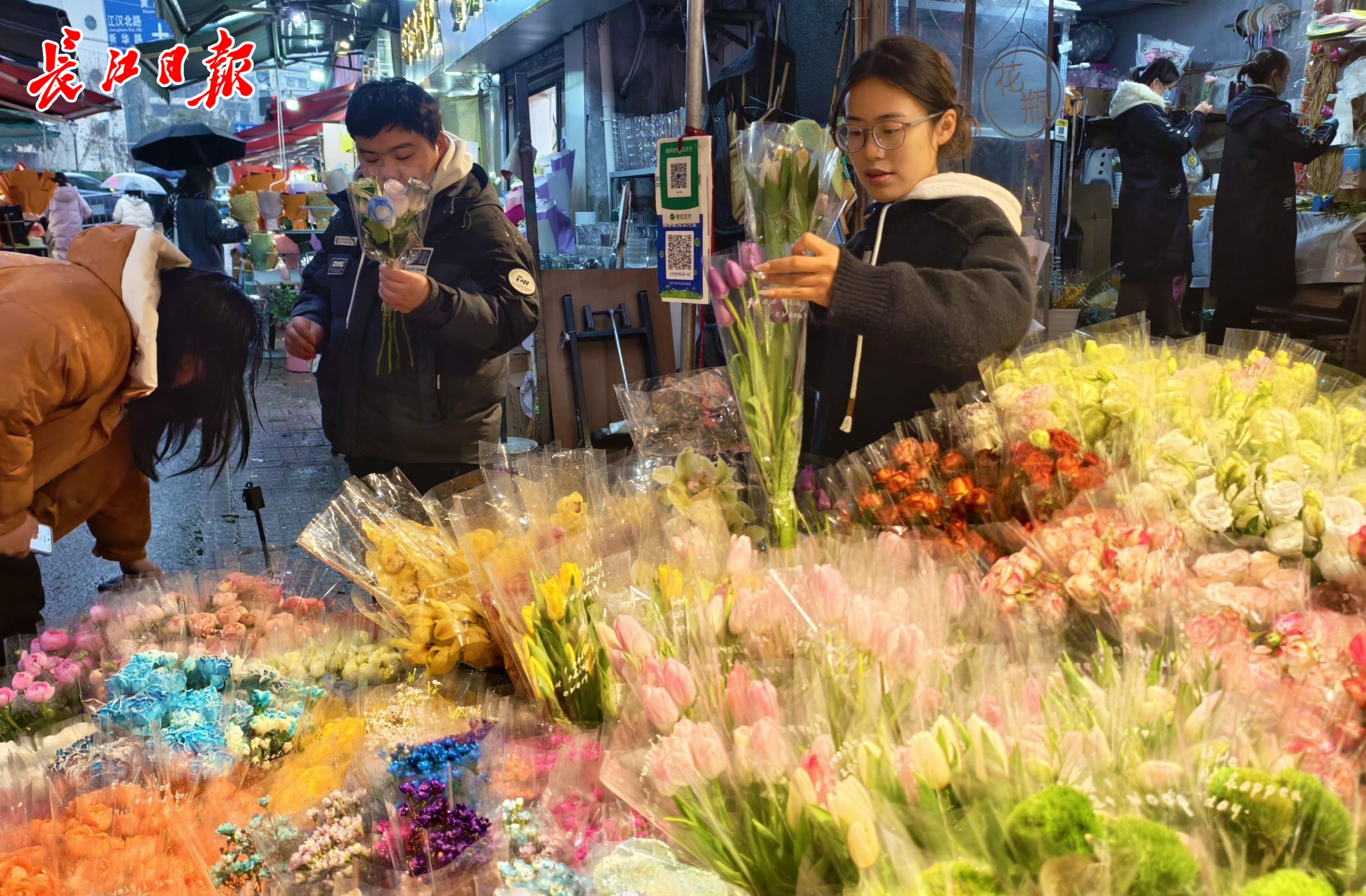1月29日,距离农历新年还有十多天,武汉循礼门花市里,即使是下雨天也有不少市民来到这里看花选花。玫瑰、蝴蝶兰、郁金香等花卉因花形漂亮,而且价格波动不大,深受市民喜欢,购买回去后装扮家居或办公场所。