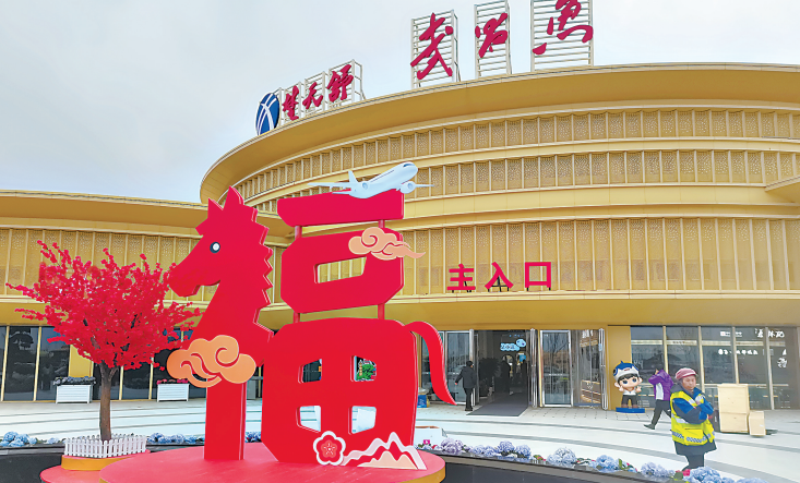 广场上,巨大的红色“福”字与两侧盛开的鲜花迎接着八方来客。店铺门楣上,红灯笼与中国结随风轻摆,配合着欢快律动的音乐喷泉,节日喜庆气氛扑面而来。