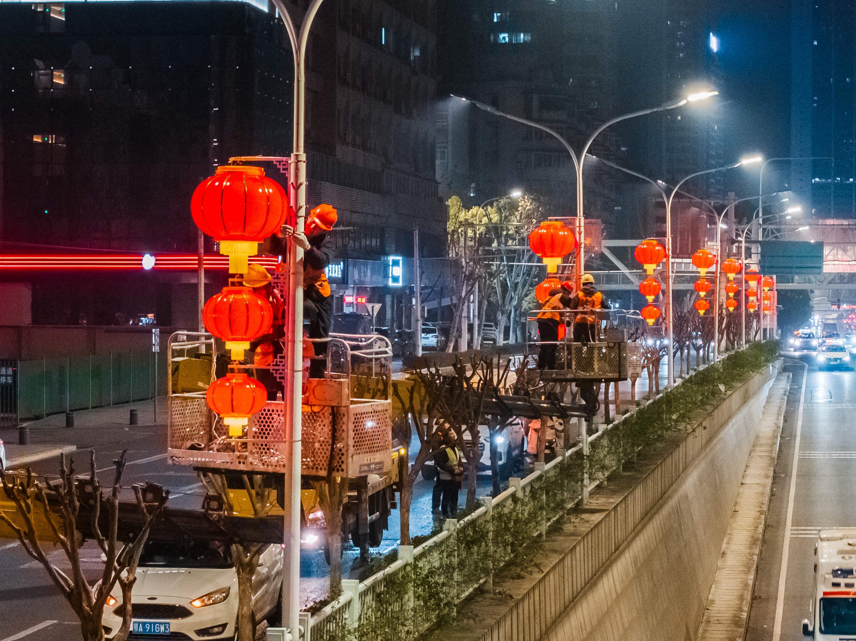 大红灯笼高高挂,喜气洋洋迎新春。随着2026年马年春节的脚步日益临近,2月3日凌晨起,武昌区中南路、中北路、八一路及中山路武昌火车站周边等道路的灯笼和中国结悬挂施工悄然拉开帷幕。