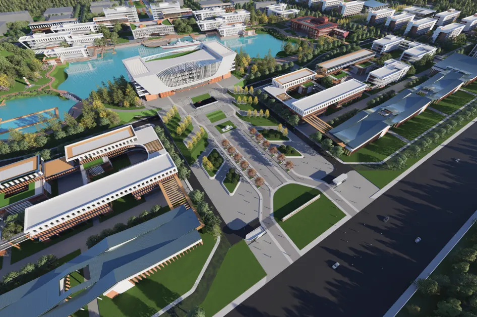 项目总用地面积约为1350亩,总建筑面积约41.76万平方米,涵盖教学实训、食宿运动、行政办公等全套设施。项目建设方、汉阳国资集团董事长虞志鹏介绍,项目规划遵循“船舶特色、智慧教育、人文底蕴”理念,将有效破解老校区空间瓶颈,打造现代化校园,预计2028年3月竣工验收,投用后可满足1.5万名学生学习生活需求。