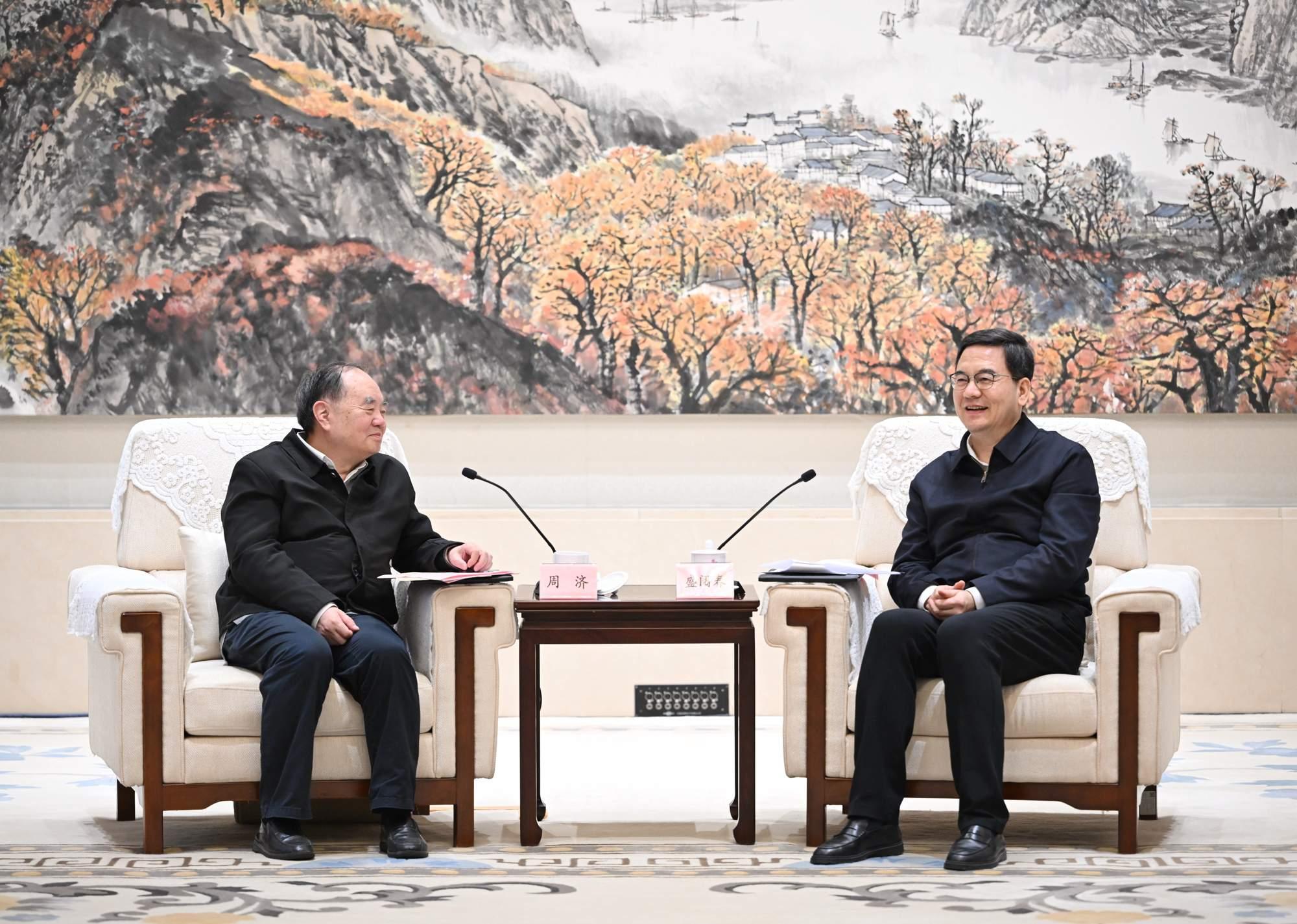 2月5日,省委常委、市委书记盛阅春会见中国工程院主席团名誉主席、院士周济一行。