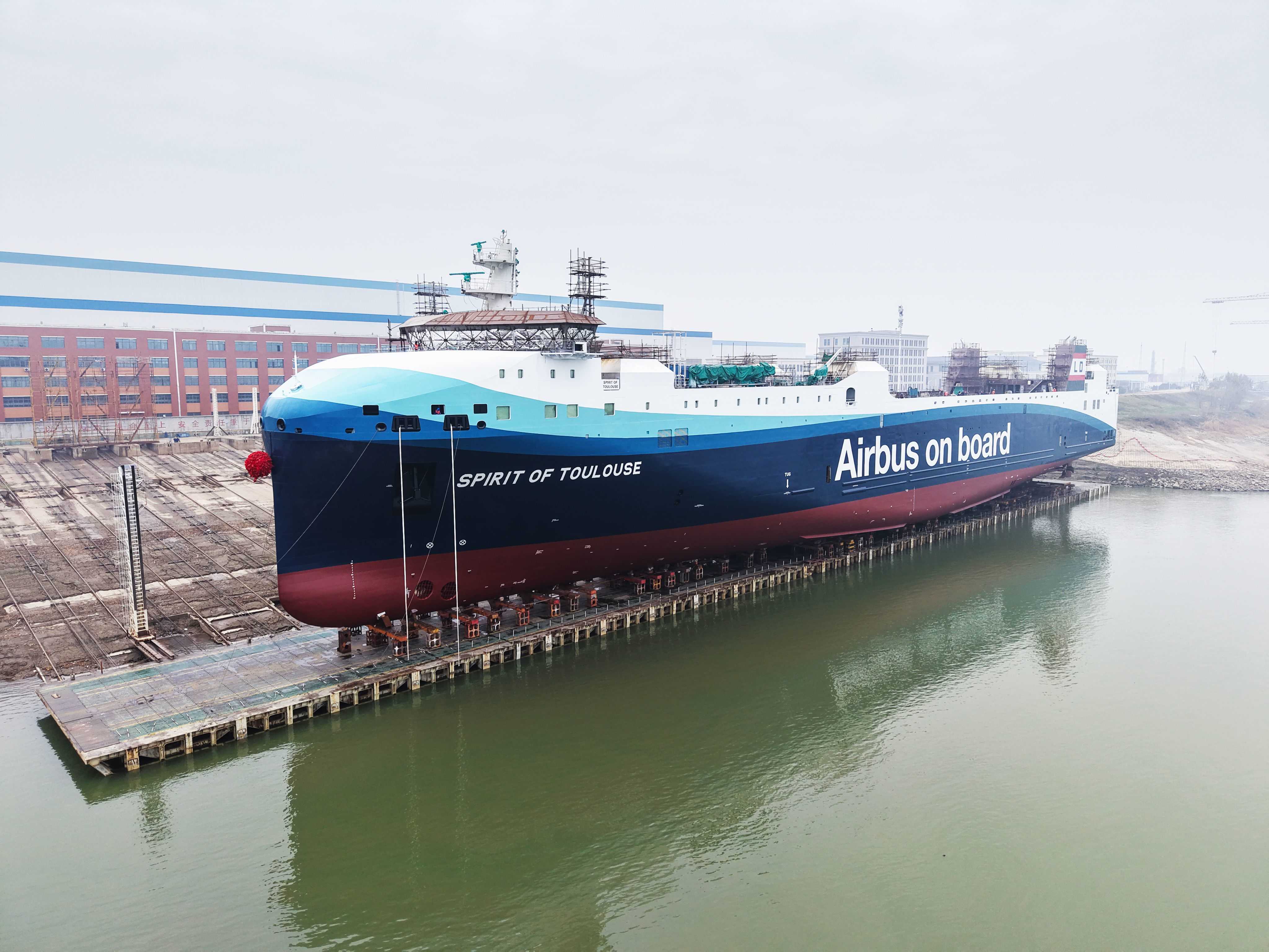 该船交付后,将运送飞机部件,一次可运输大约70个40英尺的集装箱和6个单通道飞机组件——机翼、机身、发动机挂架、水平和垂直尾翼。为满足飞机部件的特殊运输需求,该船艉部配备全套滚装系统,包括重型艉跳板与大型货物电梯,可实现大尺寸部件的快速、安全滚装装卸,保障物流效率与货物完整性。