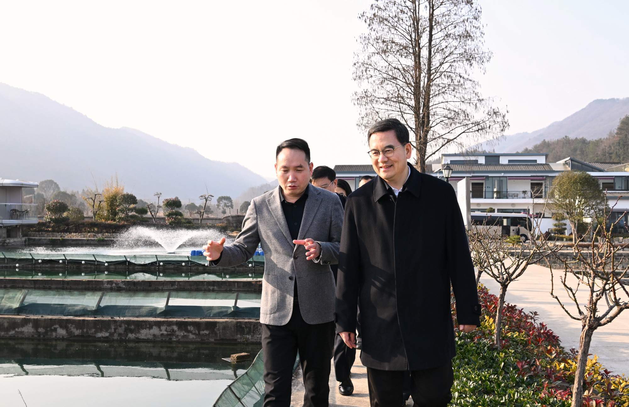 湖北水韵天泉生态农业科技有限公司是集长江鮰鱼养殖、加工、销售、餐饮于一体的现代农业科技企业,其自有餐饮品牌“鱼痴渔醉”“鮰归”在我市餐饮市场颇受欢迎。盛阅春走进企业,察看特色产品展示,深入了解水产养殖基地运营发展、街村两级培育壮大富民产业等情况。他鼓励企业面向市场需求,加强科技创新,不断提升智慧养殖水平,丰富菜肴品类,培育壮大鮰鱼产业链,带动更多村民就业,助力乡村振兴。街村两级要因地制宜发展乡村特色产业,促进农民就地就近就业增收。