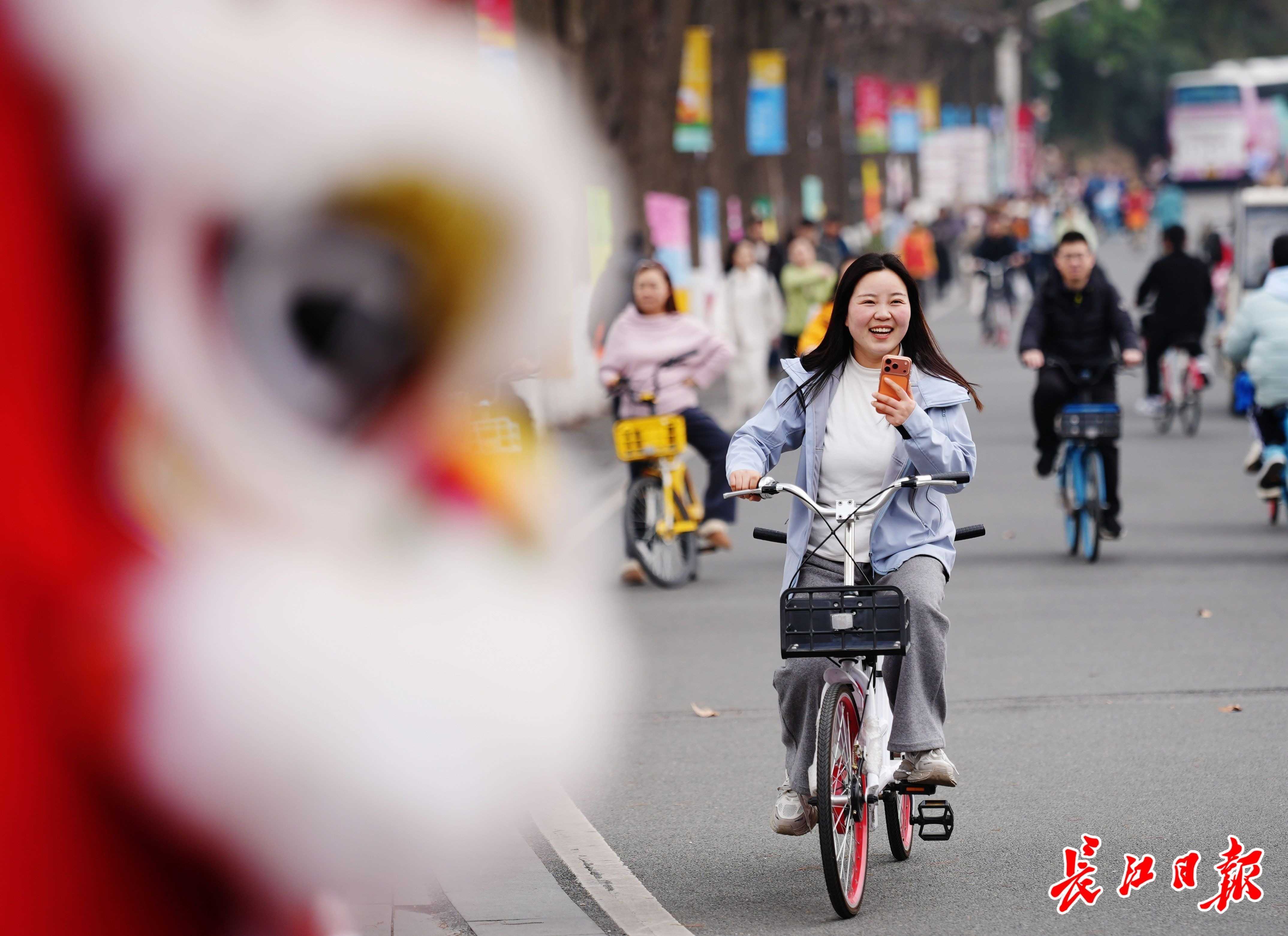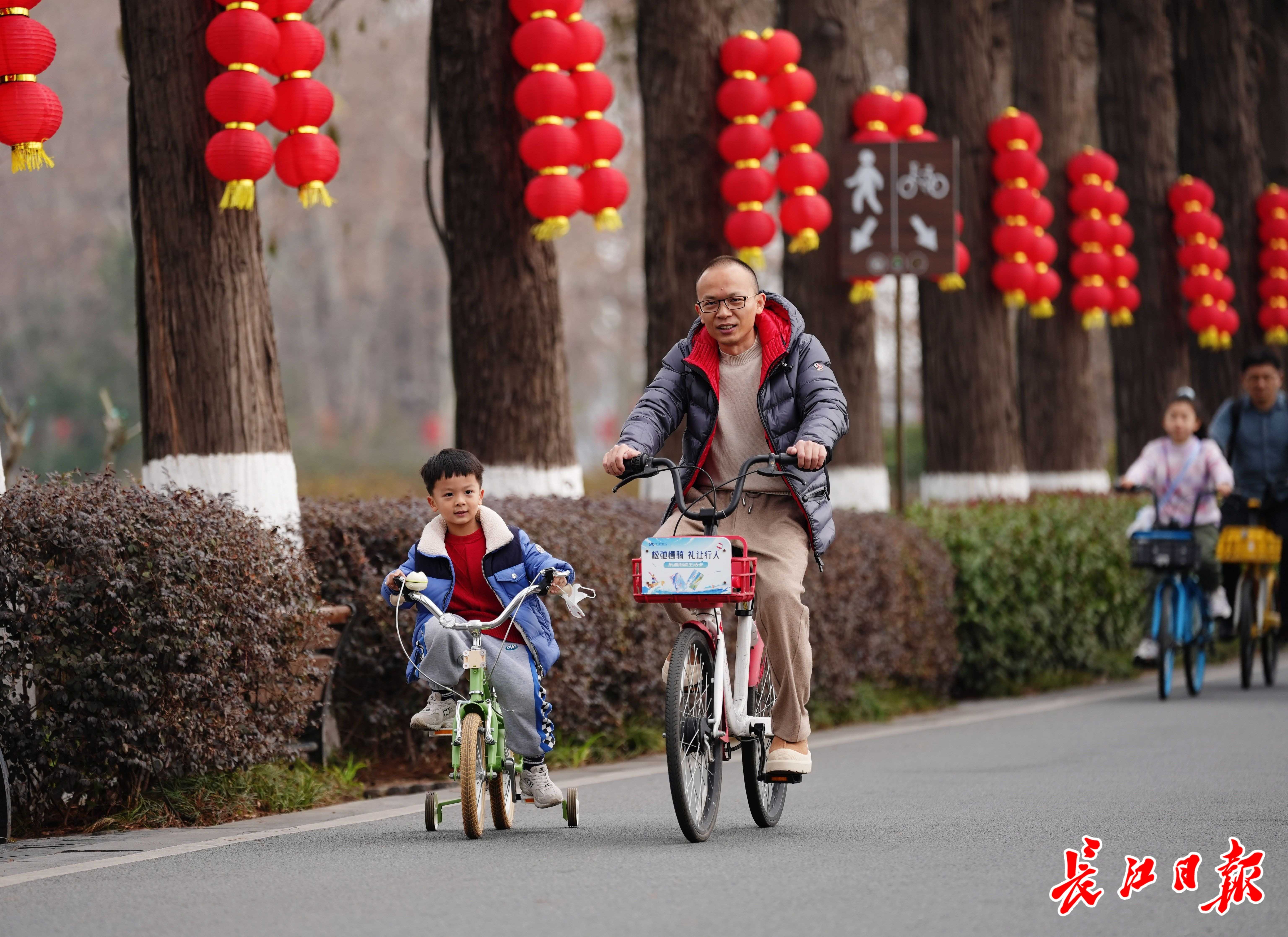 2月15日上午,东湖绿道环湖路上,亲子骑行、情侣漫步、家庭打卡络绎不绝,湖风拂面、水鸟翩跹,红灯笼与新春装置沿路铺展,节日氛围拉满。亲子骑行、情侣漫步、家庭打卡络绎不绝,开阔的湖岸线与清新的自然生态,让不少外地游客将这里作为来汉第一站。