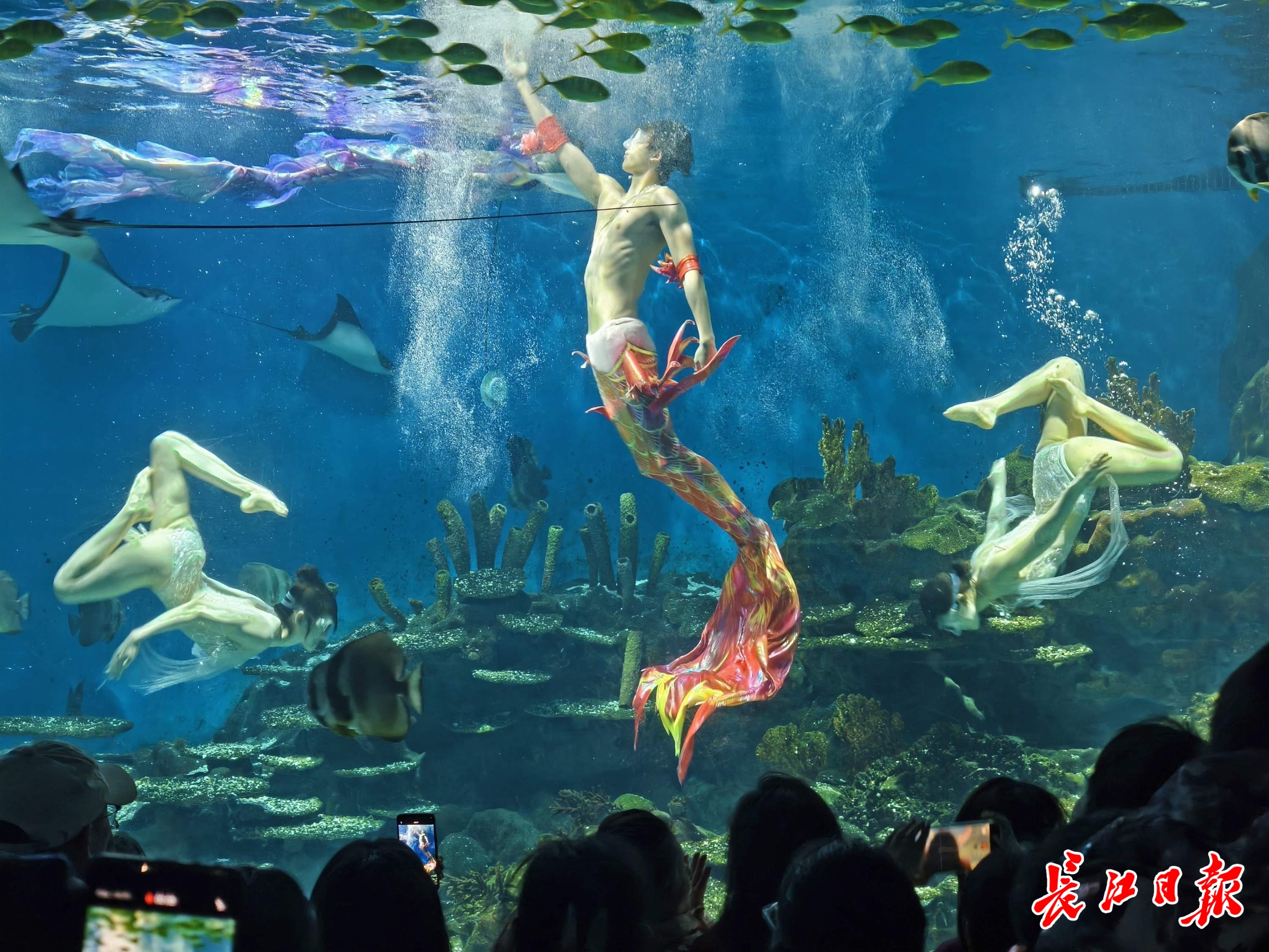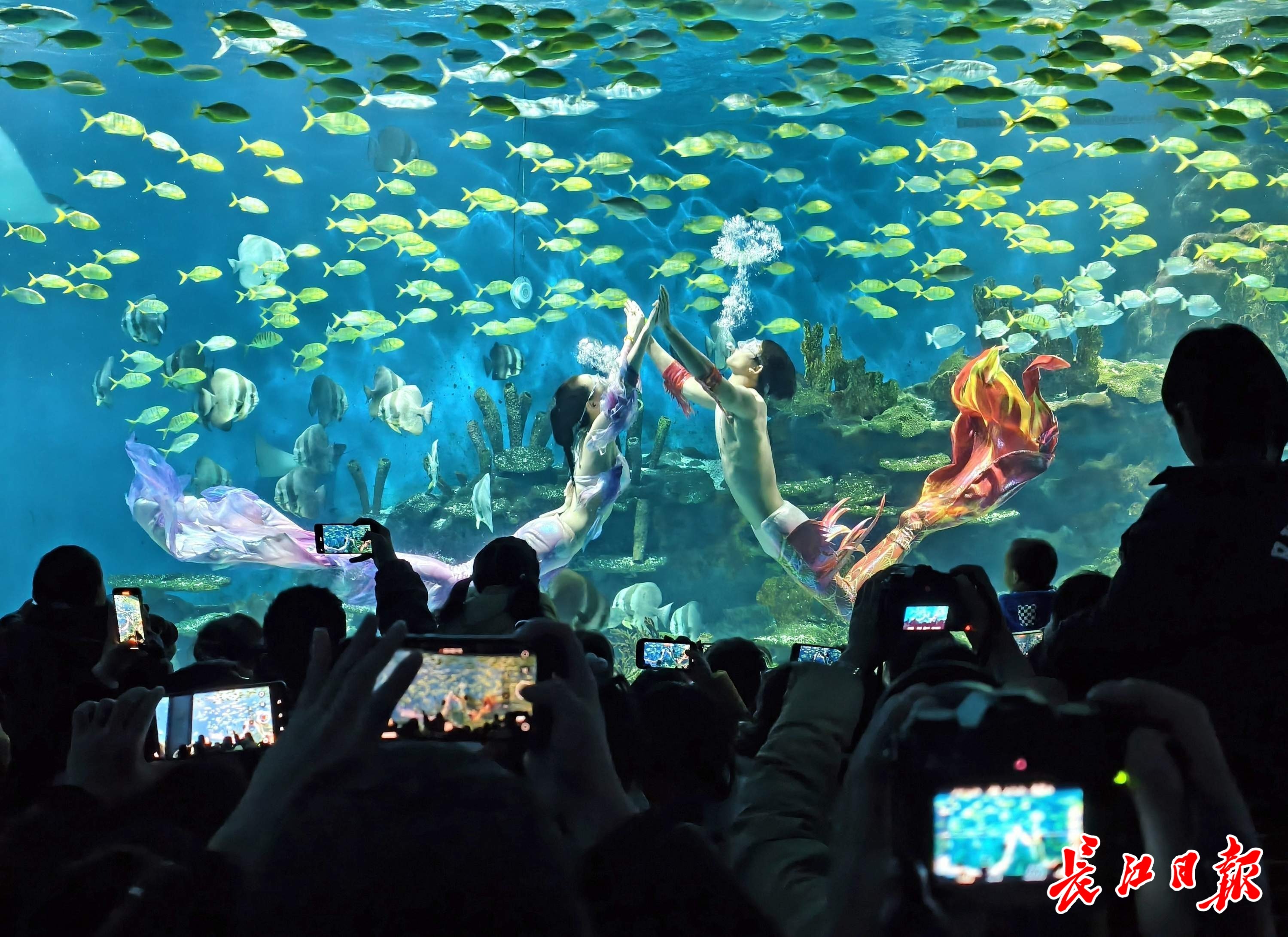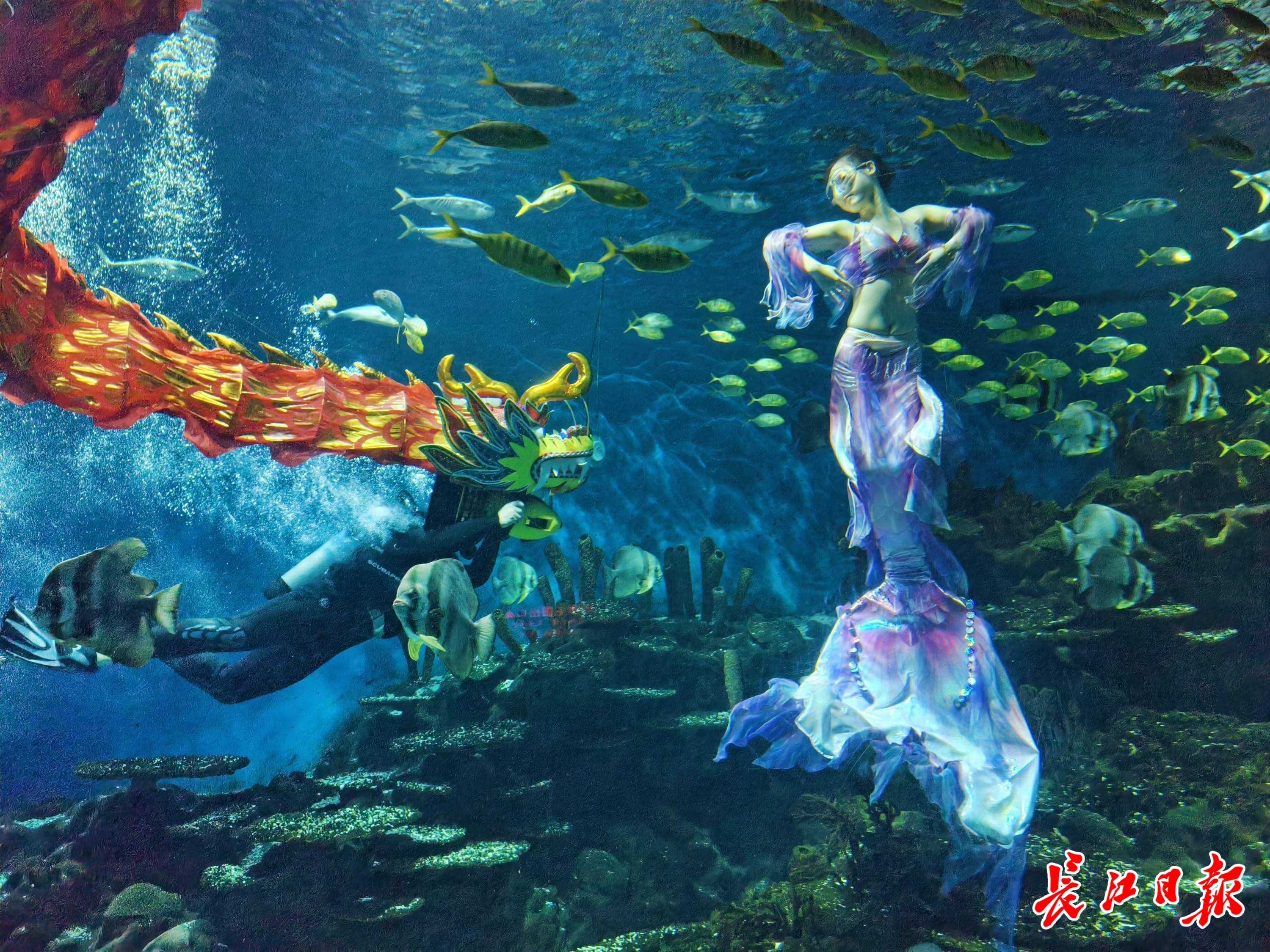 马年春节假期,武汉极地海洋度假区,非遗舞龙潜入海底隧道,祥龙与美人鱼默契共舞,以祥瑞姿态拉开新年序幕。
