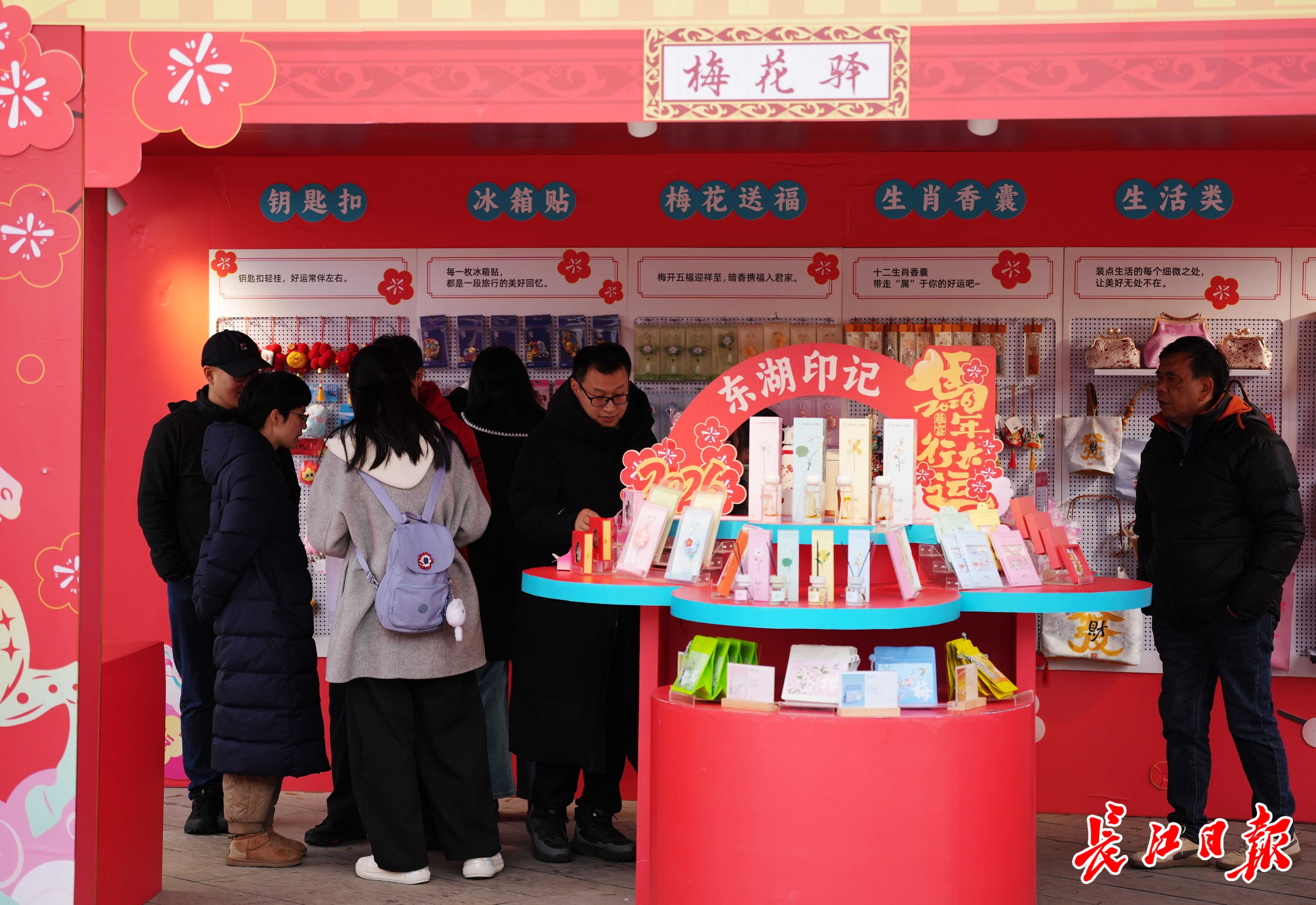 旺盛人气有效转化为消费动能。“东湖手信”文创产品表现抢眼,节前布局的11个盲盒机在春节期间实现营收51万元。与支付宝联名的“马上有钱花”互动毛绒挂件成为爆款,多价位盲盒中,29.9元款式日均销售超3000个。楚小樱樱花系列单品销量持续增高,为即将到来的樱花季预热。
