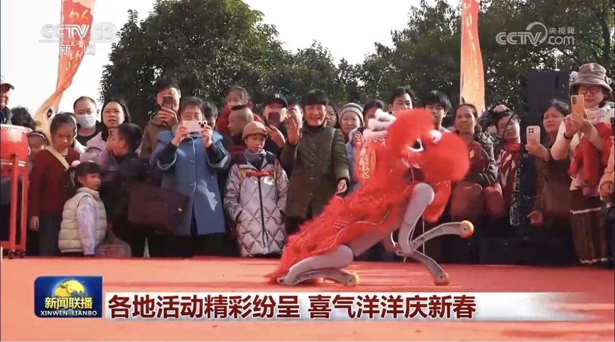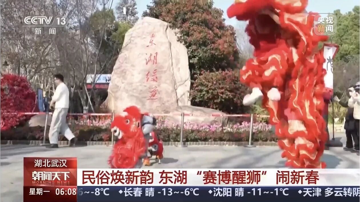 2月23日大年初七,CCTV-13《朝闻天下》以《民俗焕新韵 东湖“赛博醒狮”闹新春》为题,聚焦武汉东湖绿道的舞龙舞狮表演。科技赋能民俗,披醒狮装扮的仿生机器狗与传统队伍默契互动,看完的游客一脸兴奋表示“好新奇”。