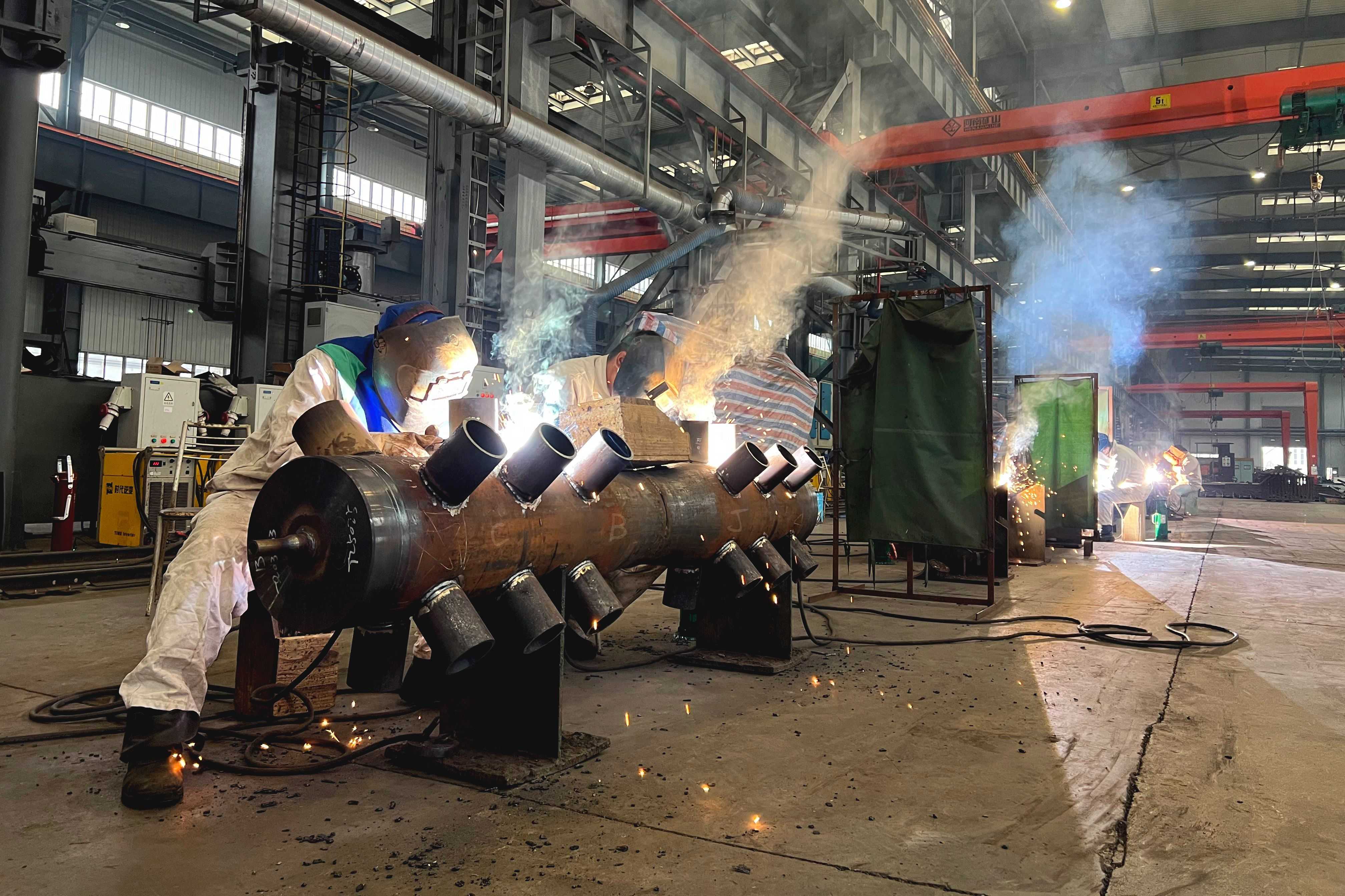机器轰鸣作响,焊花四处飞溅,走进武汉控股集团权属企业武锅能源有限公司(以下简称武锅能源)生产车间,生产线上工人忙而有序。眼下,这家企业订单已排至今年八月,产线开启 “人停机不停” 模式。