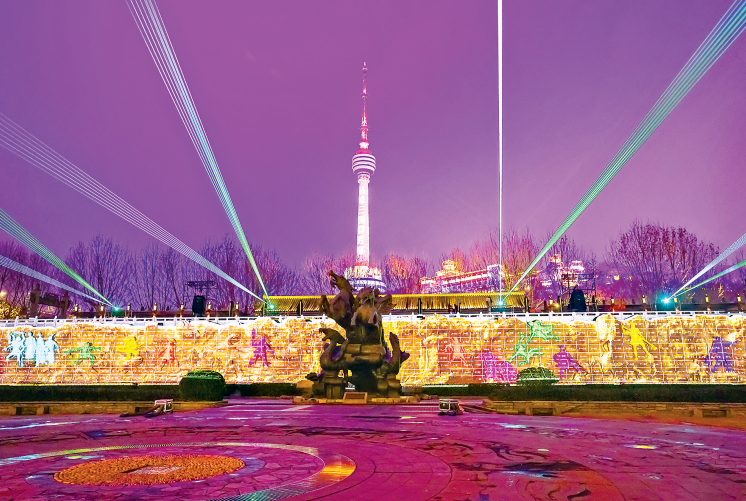 与此同时,科技元素的巧妙植入,为这条传统文旅线赋予了新的传播动能。晴川灯会运用现代光影技术重塑上古神话场景,营造梦幻体验;龟山电视塔引入了机器人讲解、机器狗表演等“春晚同款”科技互动,在古老地标背景下制造出强烈的时空反差感,极大提升了活动的趣味性与在社交媒体的分享价值。