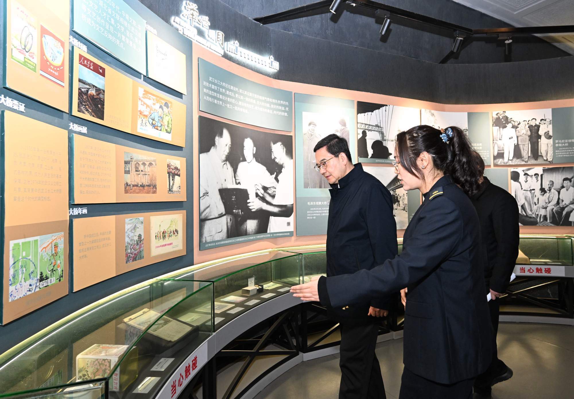 武汉长江大桥是万里长江第一桥,1956年毛泽东同志畅游长江后,在武昌桥头堡内的会客厅挥毫写下“一桥飞架南北,天堑变通途”的名句。盛阅春来到长江大桥武昌桥头堡,详细了解大桥保护和文旅利用情况。他强调,长江大桥是武汉“一桥两山”文旅规划的核心节点。要坚持国际视野,高水平保护、高品质利用,提高“毛主席会客厅”、长江大桥博物馆等重要历史场景、展馆的知名度,用好AI等技术手段,让海内外游客充分了解长江大桥的光辉历史。