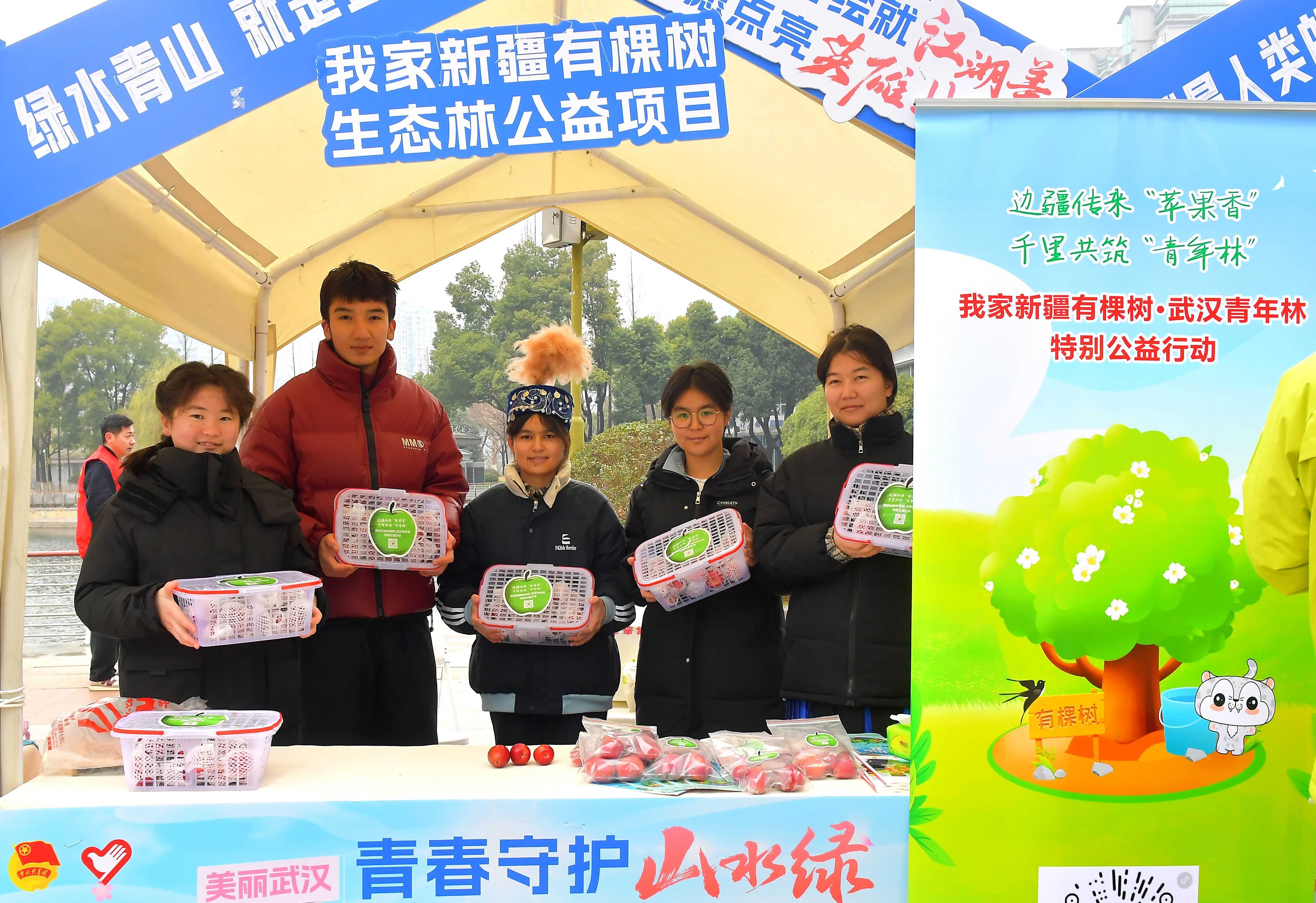 2025年3月5日,武汉市生态环境局青工委组织了一场“品果分享会”,摆在大家面前的是一颗颗鲜红的海棠果。这些海棠果来自博乐市,一年前,这个单位的青年认捐下125棵海棠树苗。