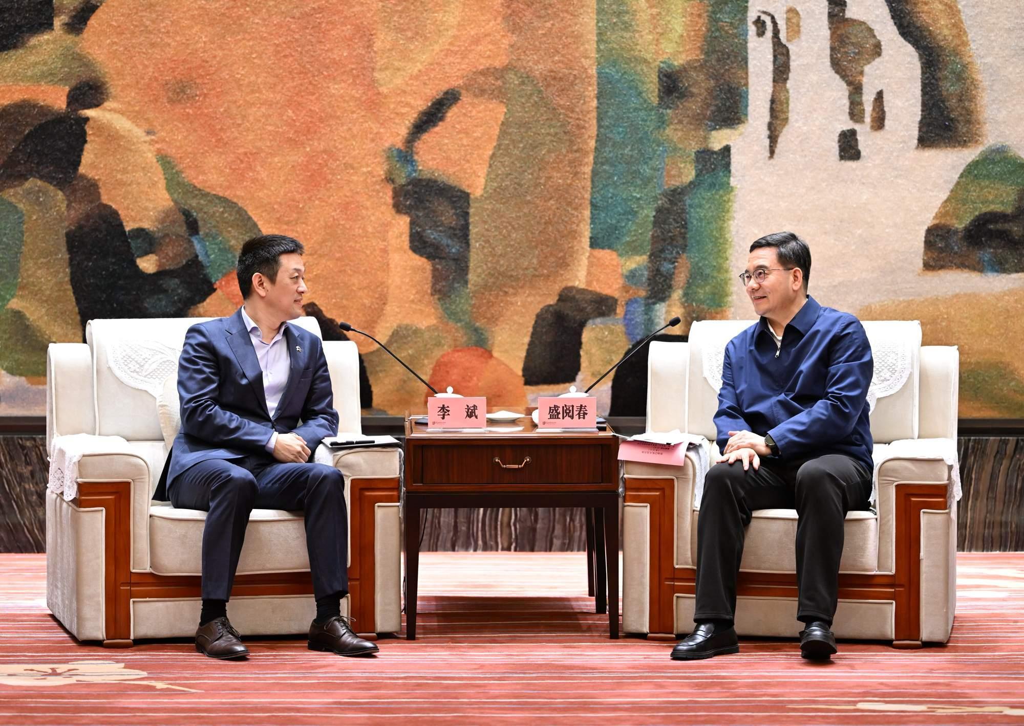 3月12日,省委常委、市委书记盛阅春,市委副书记、市长熊征宇会见蔚来创始人、董事长兼首席执行官李斌。