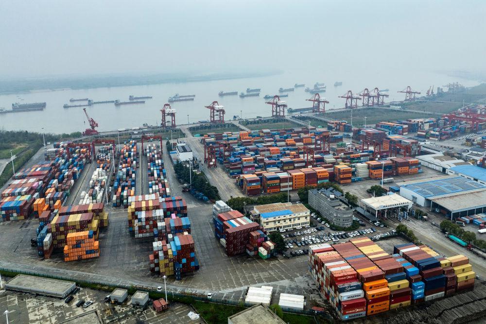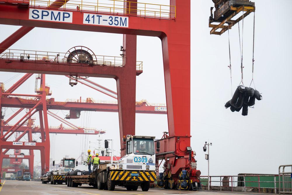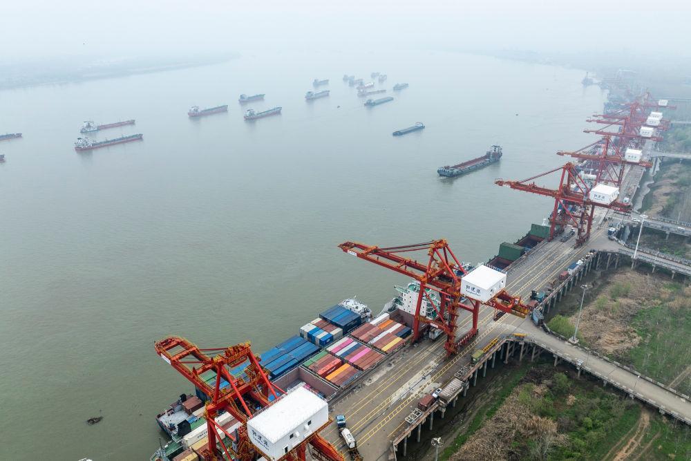 3月26日拍摄的武汉阳逻港