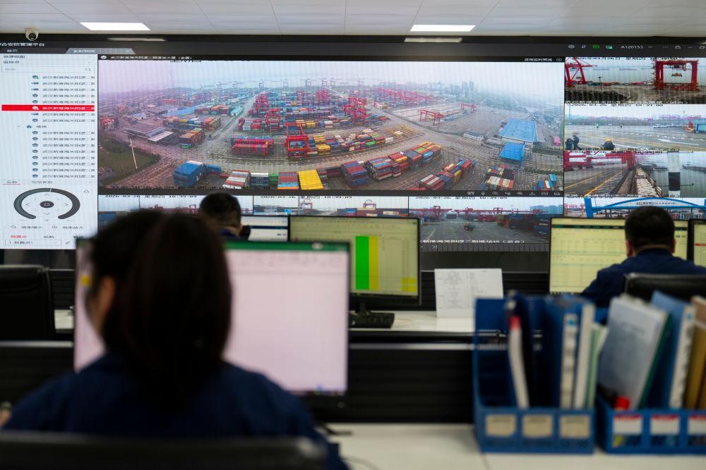 3月26日拍摄的武汉阳逻港中控室