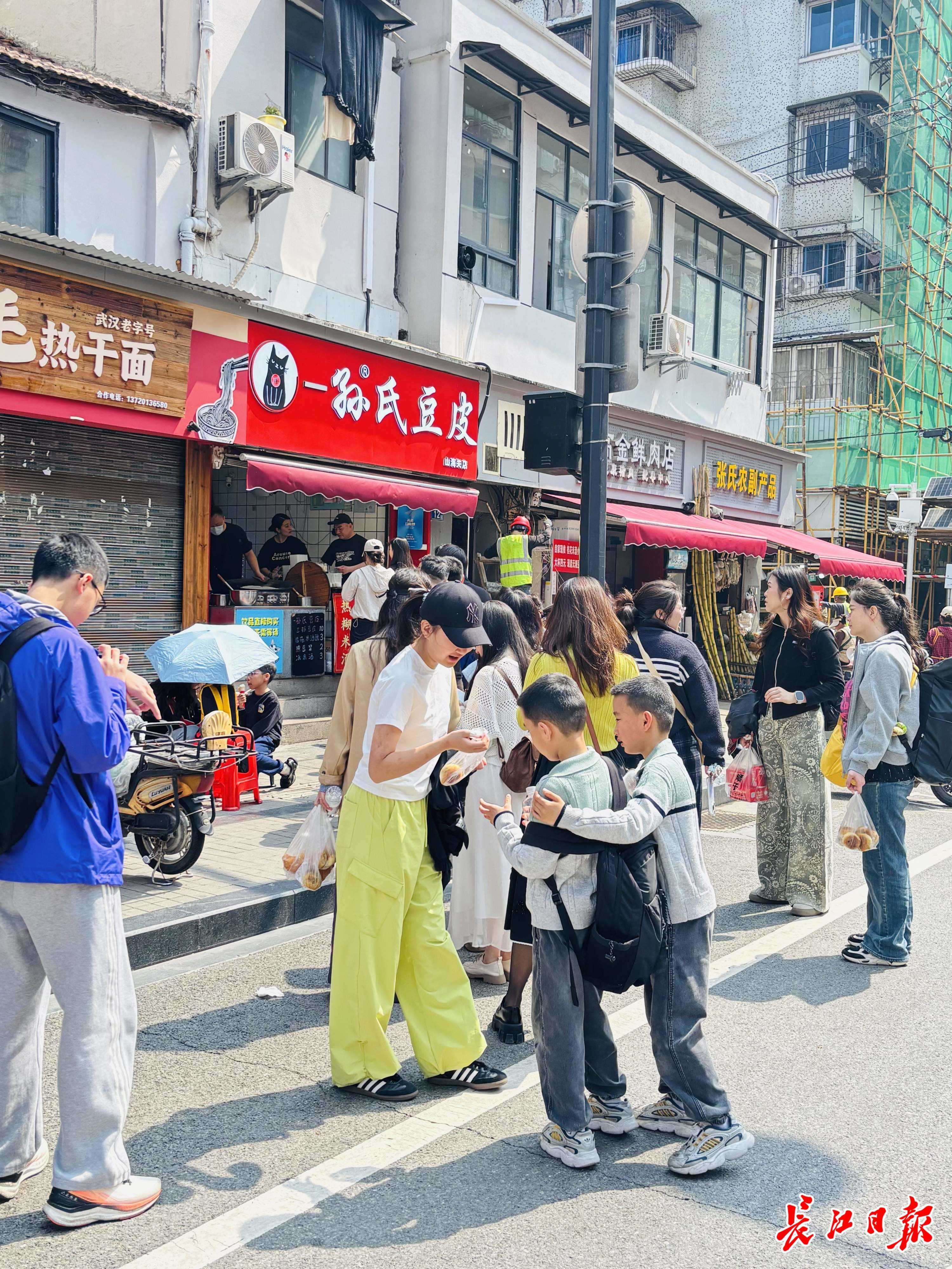 4月1日上午,山海关路,外地亲子家庭来吃武汉美食。