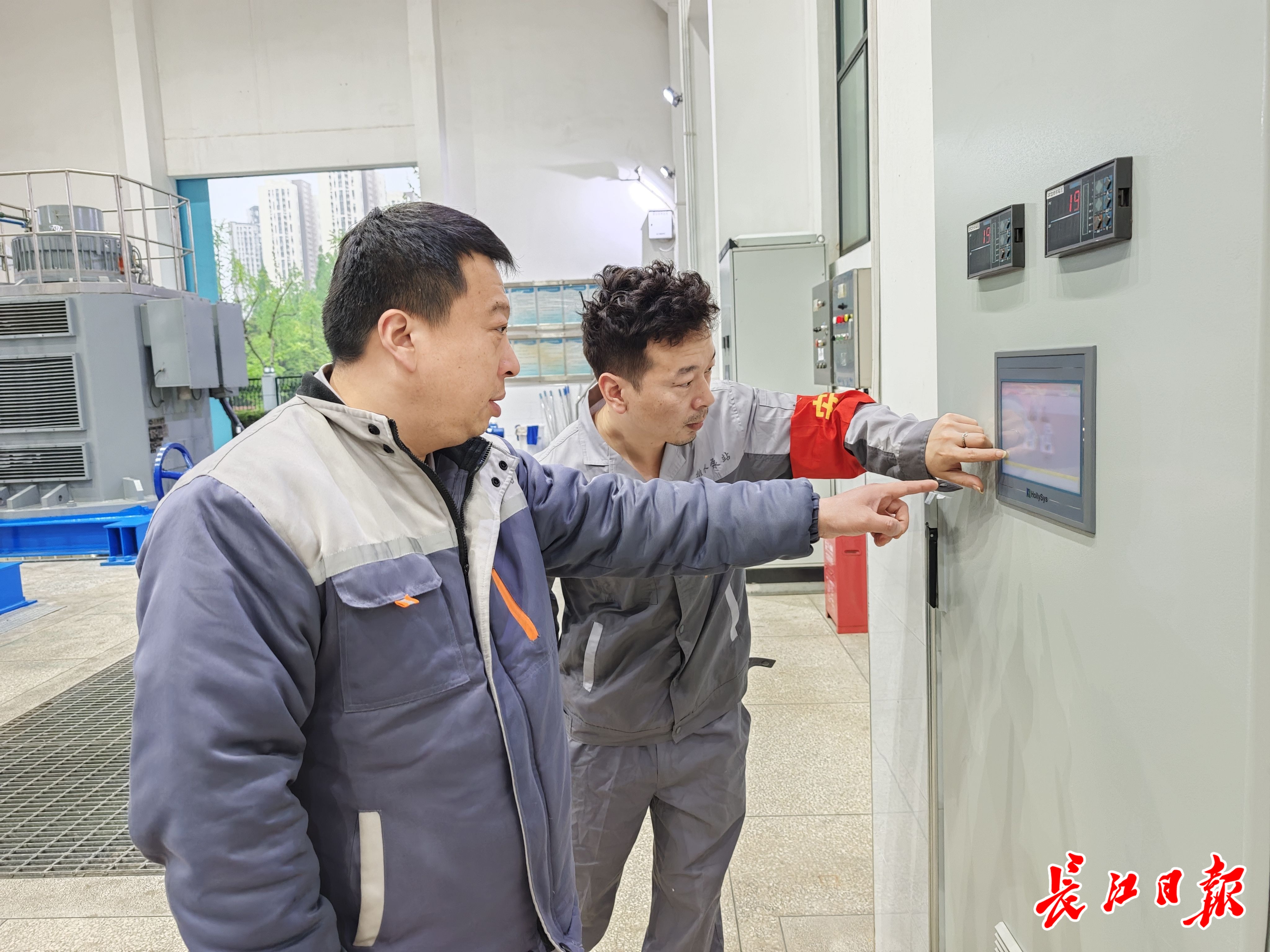 7时15分,控制室内屏幕显示:当前前池水位19.43米。“低于警戒线,如果继续大幅上涨,我们会开启其他水泵机组。”班组成员刘斌说道。