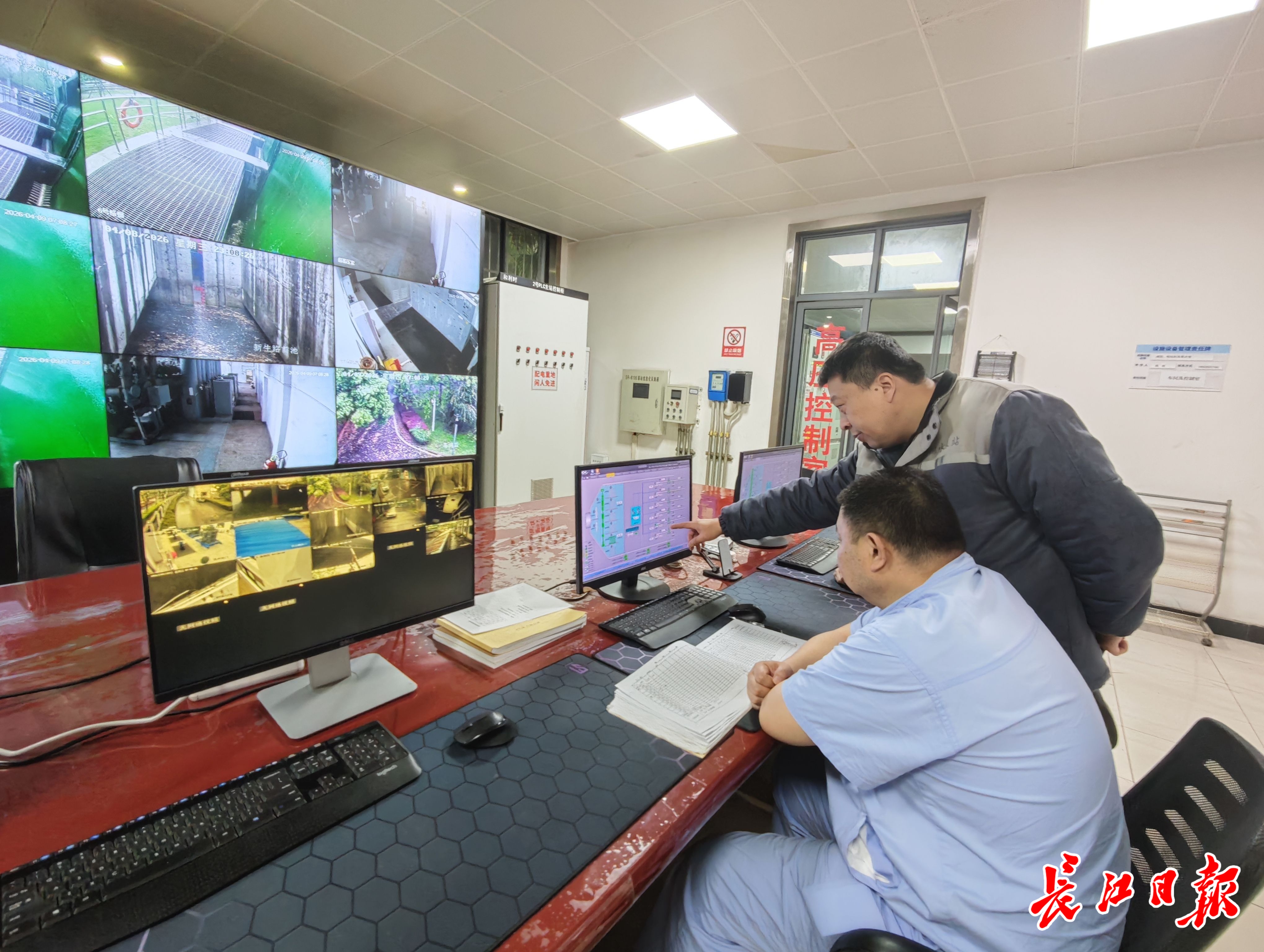 在位于武昌区的新生路泵站看到,机房内,抽排机组正轰鸣运转。泵站人员在机房内四处巡视,关注机组运行情况。控制室内,工作人员紧盯监控大屏和电脑数据,根据雨情变化随时调整抽排力量。