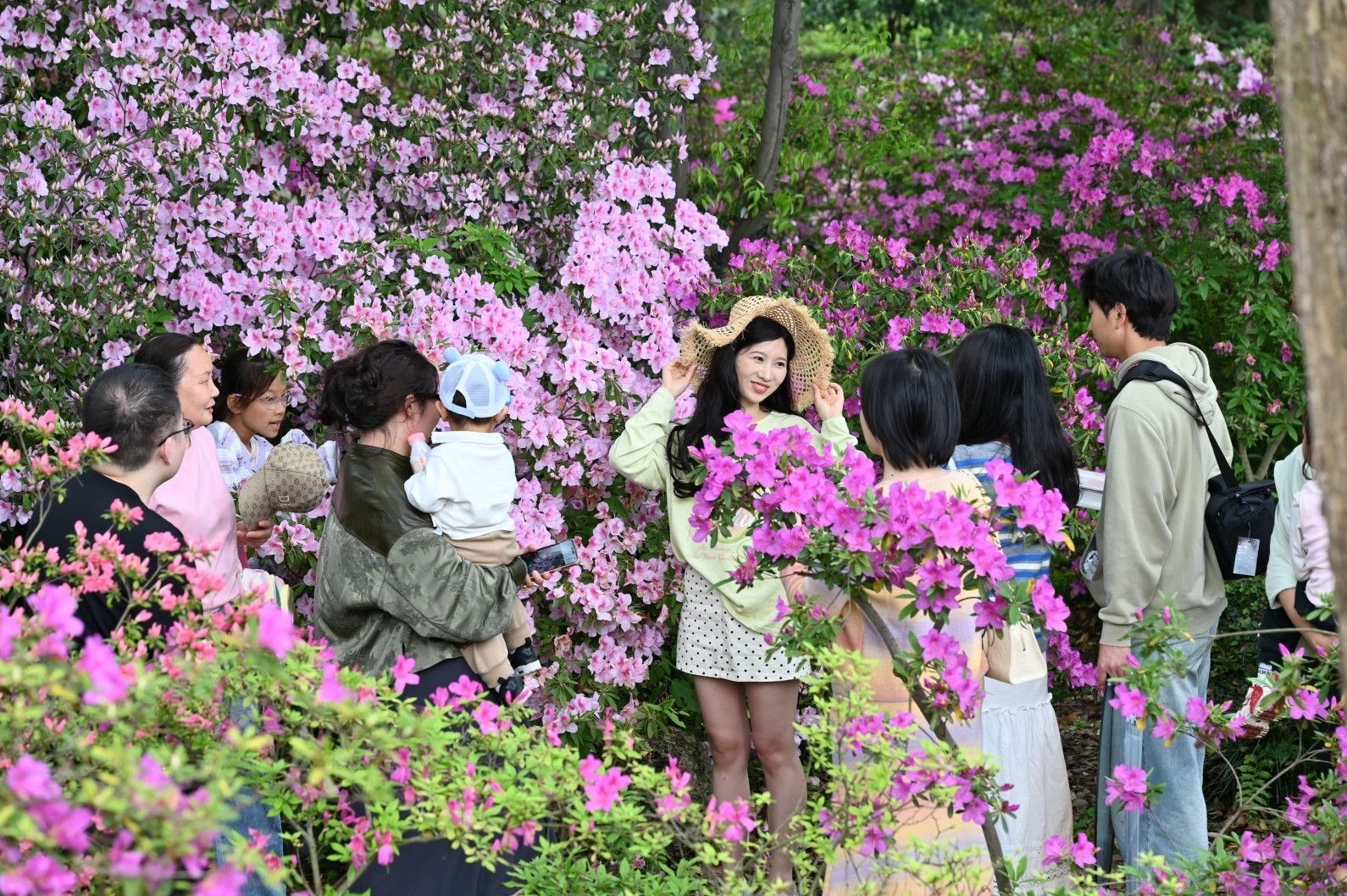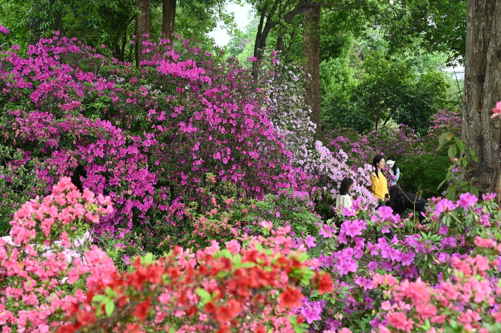 经过多年收集保育,眼下中国科学院武汉植物园汇聚了国内外杜鹃品种200余个,共7万余株,有红、粉、紫、白、黄、橙、绿等7种花色。