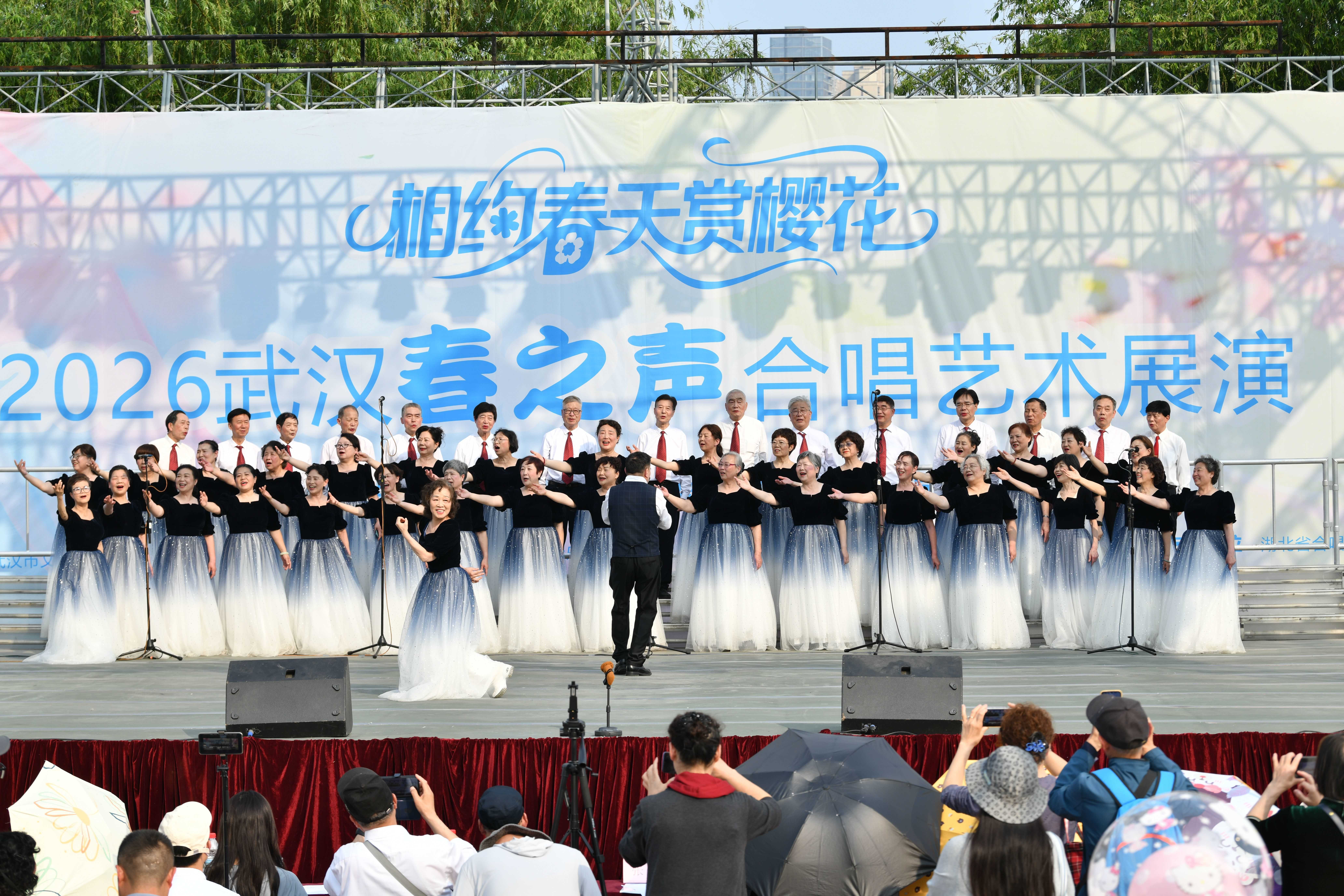 2026年正值中国共产党成立105周年,红军长征胜利90周年。展演中,许多合唱团选择了相关的曲目,如《党旗飘飘》《没有共产党就没有新中国》《领航》《十送红军》等,也不乏《樱花时节》《汉阳门花园》《世纪春雨》《立春》《春风十万里》等反映武汉地域风情与春季美景的作品。他们用丰满的和声唱响时代旋律,用动人的歌喉赞美幸福生活。