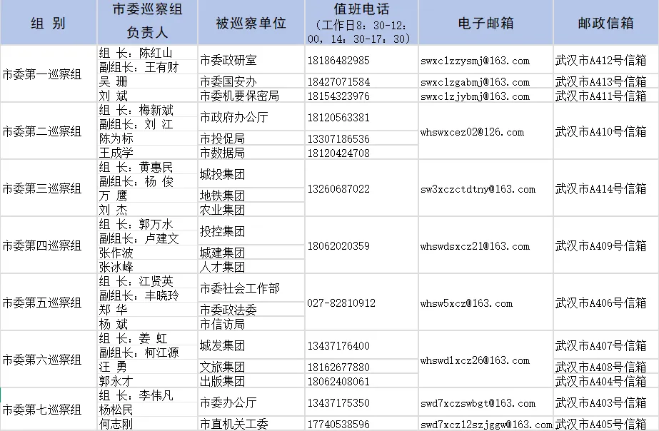本轮巡察时间45天左右,其间设立值班电话、邮政信箱、电子邮箱和“荆楚码上巡”,主要受理反映被巡察党组织领导班子及其成员、下一级党组织主要负责人和重点岗位领导干部问题的来信来电,重点是关于违反政治纪律、组织纪律、廉洁纪律、群众纪律、工作纪律、生活纪律等方面的举报和反映。
