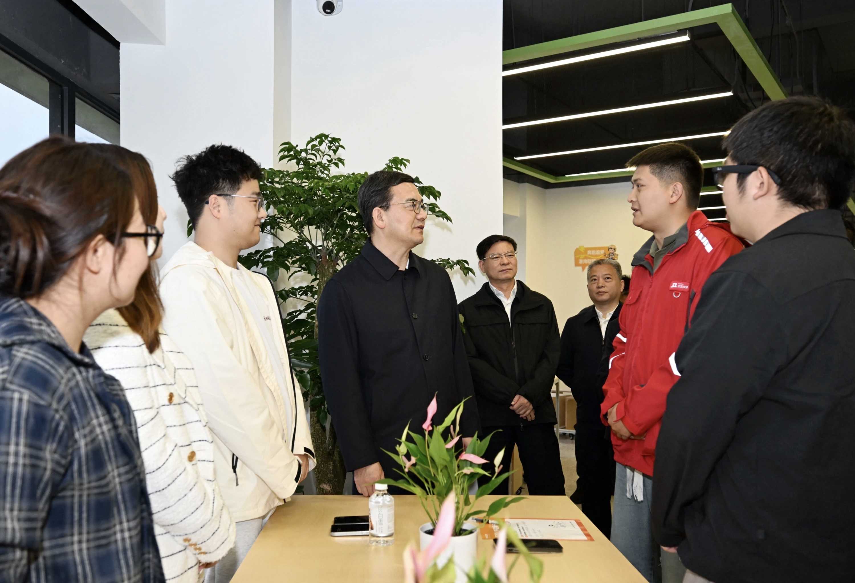 位于东湖高新区的中国(湖北)网络视听产业园是国家级重点广播电视和网络视听园区,集聚了广播影视、动漫游戏、新媒体、数字出版、创新设计等领域企业380余家。盛阅春来到这里,走访园区企业艺画开天文化传播有限公司,与企业负责人交流,看望慰问优秀青年创新创业代表,并听取相关部门和区推进青年发展型城市建设、青年创新创业有关工作情况汇报。他强调,要营造好青年创新创业生态,为初创企业打造从“一张桌”到“一间房”再到“一层楼”的多层次支撑体系,实现“以创新带创业、以创业带就业”的良好循环,将更多青年创新创业的种子培育成参天大树。