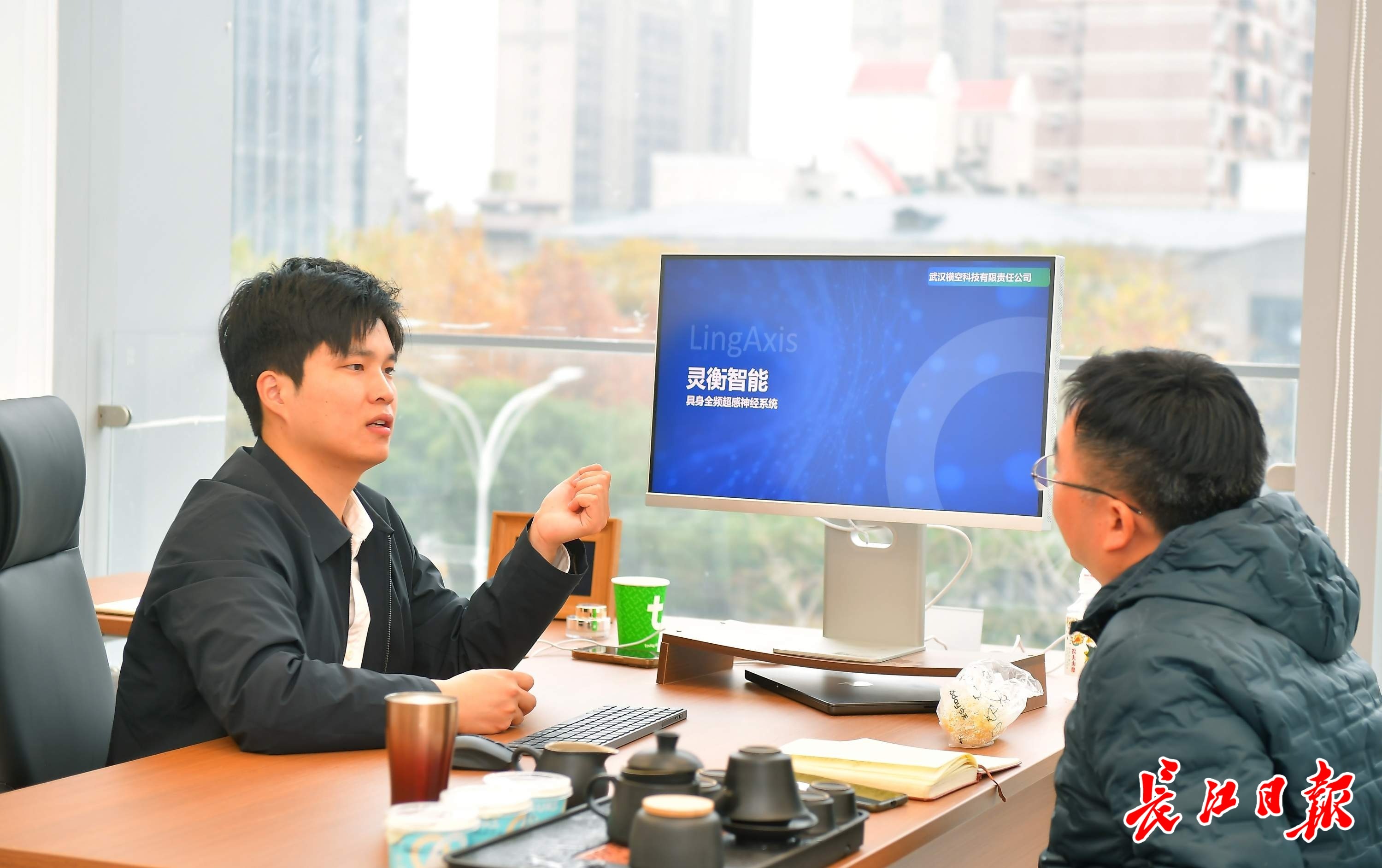 在武汉横空科技有限责任公司(以下简称横空科技公司)的办公室里,一张特别的照片定格了一个关键瞬间:公司创始人曹伟男与相关领域专家热烈交流,一旁站着市人才服务中心大学生就业创业服务部负责人刘东。当时,这家专注于具身智能感知技术的初创企业正面临训练数据匮乏的瓶颈。曹伟男回忆道:“刘部长了解情况后当即表示,‘明天,我带你们去对接’。”