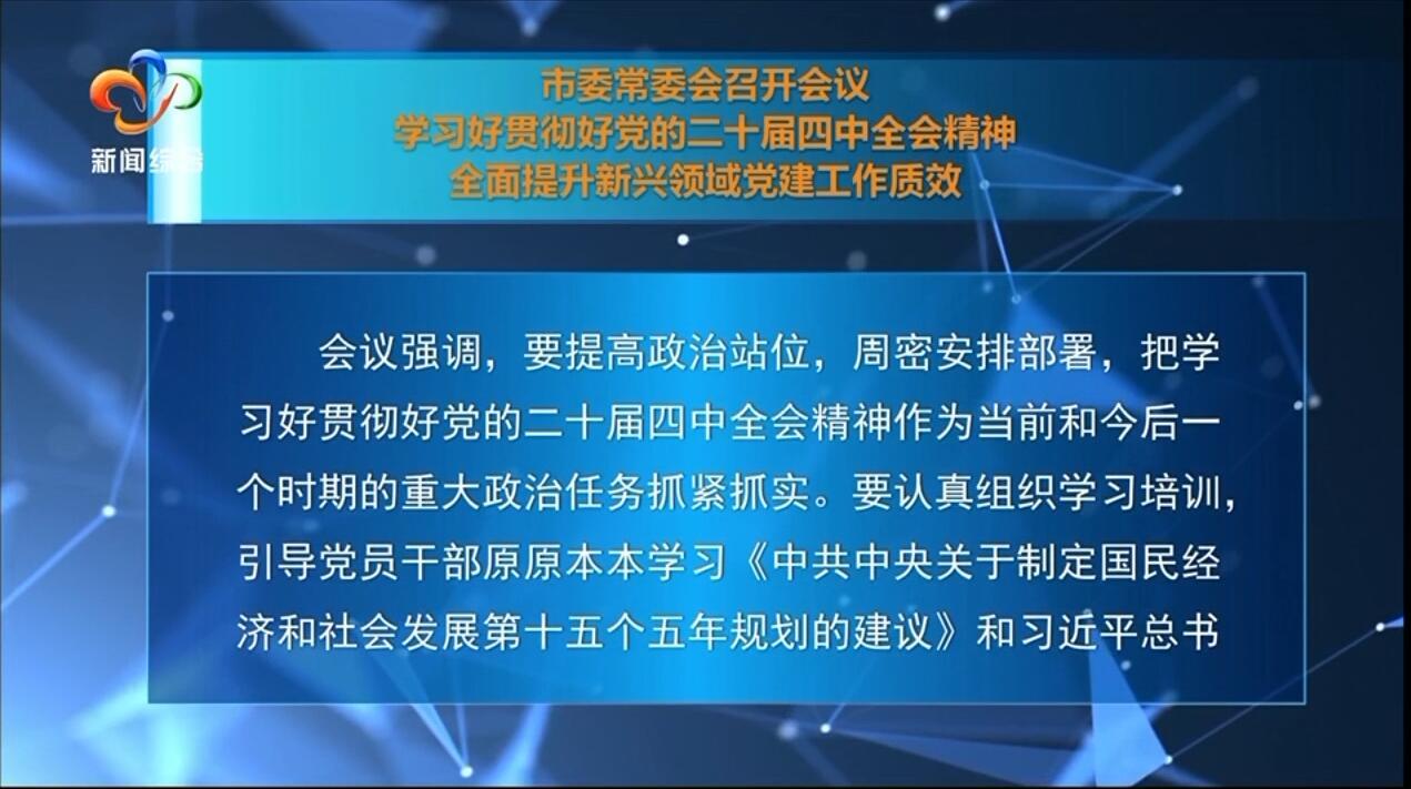 市委常委会召开会议 学习好贯彻好党的二十届四中全会精神 全面提升新兴领域党建工作质效2025-11-05 09:00 -