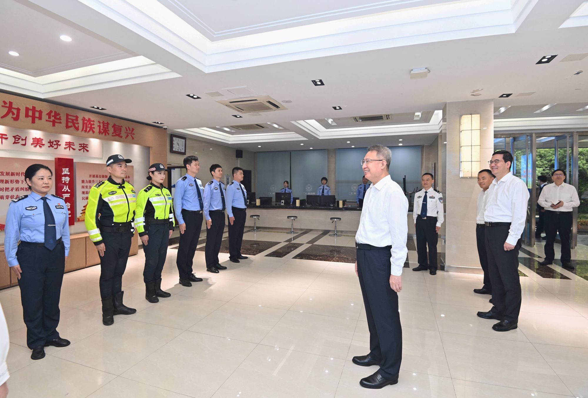 来到江岸区公安分局二七派出所,郭元强、盛阅春听取节日期间警力部署、值班备勤及重点部位治安防控情况汇报,看望一线民警和公安英模代表。郭元强感谢广大公安干警为城市平安稳定作出的贡献,希望他们继续发扬拼搏奉献精神,统筹做好节日期间警力安排,强化社会面巡逻防控,做好应急处突准备,加强矛盾纠纷排查化解,确保社会大局和谐稳定。