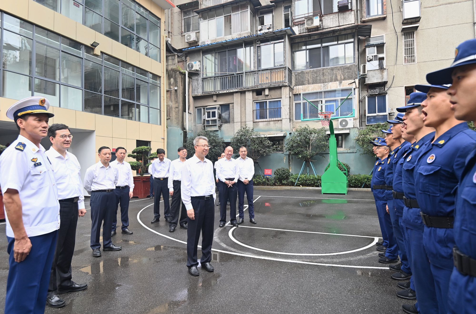 来到武昌区黄鹤楼专职消防站,郭元强、盛阅春现场听取消防站执勤力量配置、节日期间应急救援准备等工作情况汇报,看望慰问一线消防指战员。郭元强说,节日期间景区附近消防安全不容疏忽,希望大家时刻保持警惕,严格落实消防安全措施,加大动态巡防和隐患排查力度,加强值班备勤和实战演练,切实守护好市民游客生命财产安全。