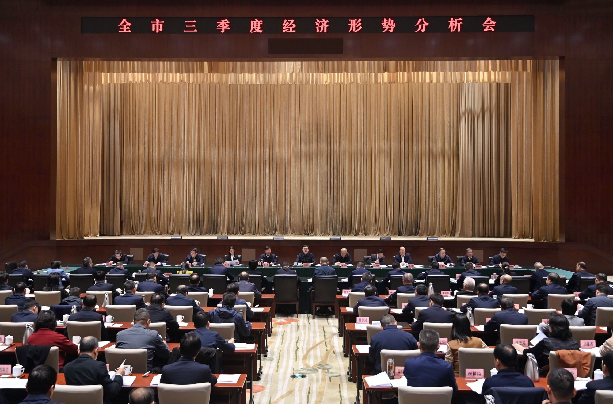 市人大常委会主任胡立山、市政协主席杨智、市委副书记孟祥伟出席会议。市发改委通报全市前三季度经济运行情况和下一步工作打算。相关部门和区(开发区)主要负责同志作交流发言。