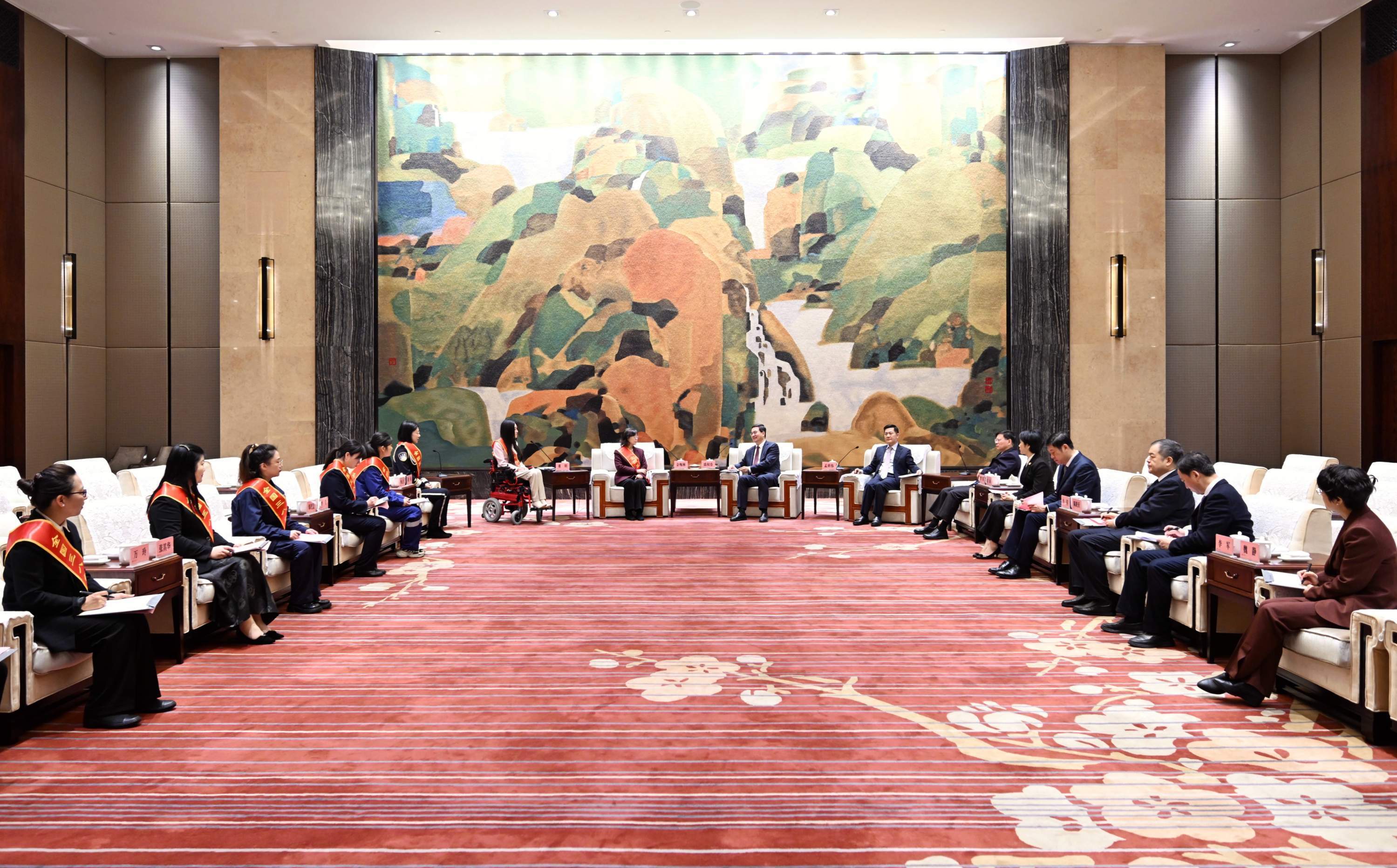 3月5日,在“三八”国际劳动妇女节来临之际,省委常委、市委书记盛阅春会见我市受表彰的全国三八红旗手(标兵)、三八红旗集体、全国巾帼文明岗代表。