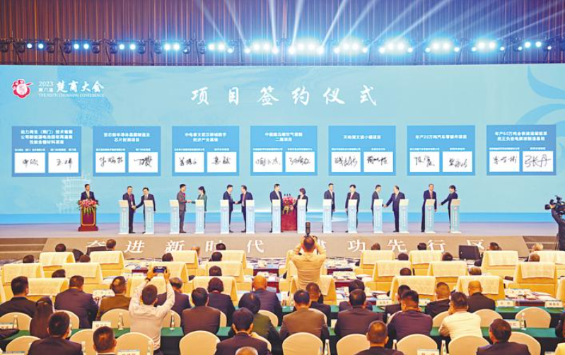 Signature des projets lors de la cérémonie d'ouverture (Photo : Hubei Daily/ Li Xi)