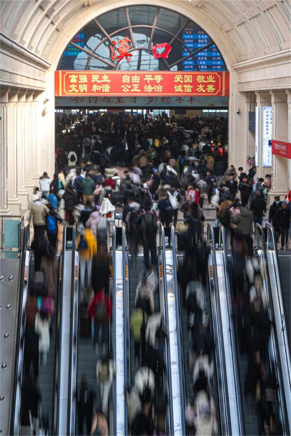 Fahrgäste am Bahnhof Hankou in Wuhan, in der zentralchinesischen Provinz Hubei, am 2. Februar 2026.