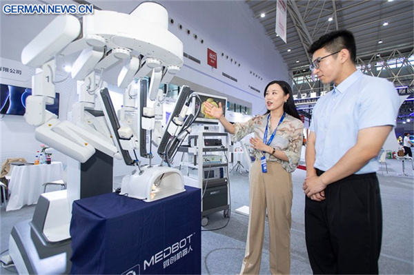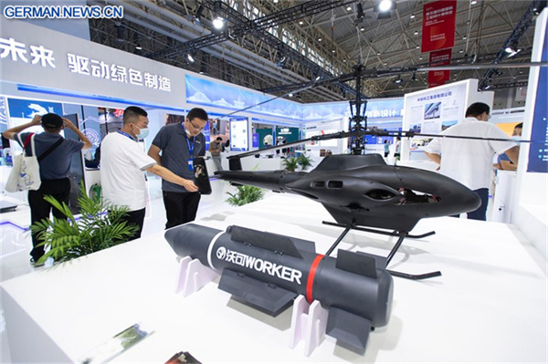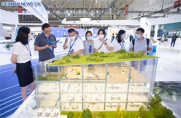 WUHAN, 6. Aug. 2022 (Xinhua) -- Messebesucher begutachten ein Exponat auf der 5. China International Industrial Design Exhibition in Wuhan in der Provinz Hubei in Zentralchina, 5. August 2022. Auf einer Ausstellungsfläche von fast 30.000 Quadratmetern wurde am Freitag im internationalen Ausstellungszentrum von Wuhan die 5. China International Industrial Design Exhibition eröffnet, die rund 330 teilnehmende Unternehmen aus der ganzen Welt anzieht. (Xinhua/Xiong Qi)