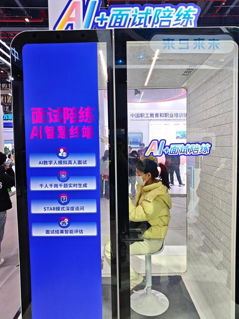 기업 역시 대회 현장에서 지역 사회 AI 일자리 매칭 솔루션을 선보였다. 장쑤(江蘇)링항(領航)인력자원그룹 부스에서는 방문객들이 난징(南京)시에 도입된 '집 앞 취업 서비스 스테이션'이라는 스마트 단말기 주변에 모여 있었다. 주민들은 이 기기를 통해 지역 일자리 정보나 취업 정책을 알아보고 또 휴대폰으로 이력서를 제출할 수 있다.