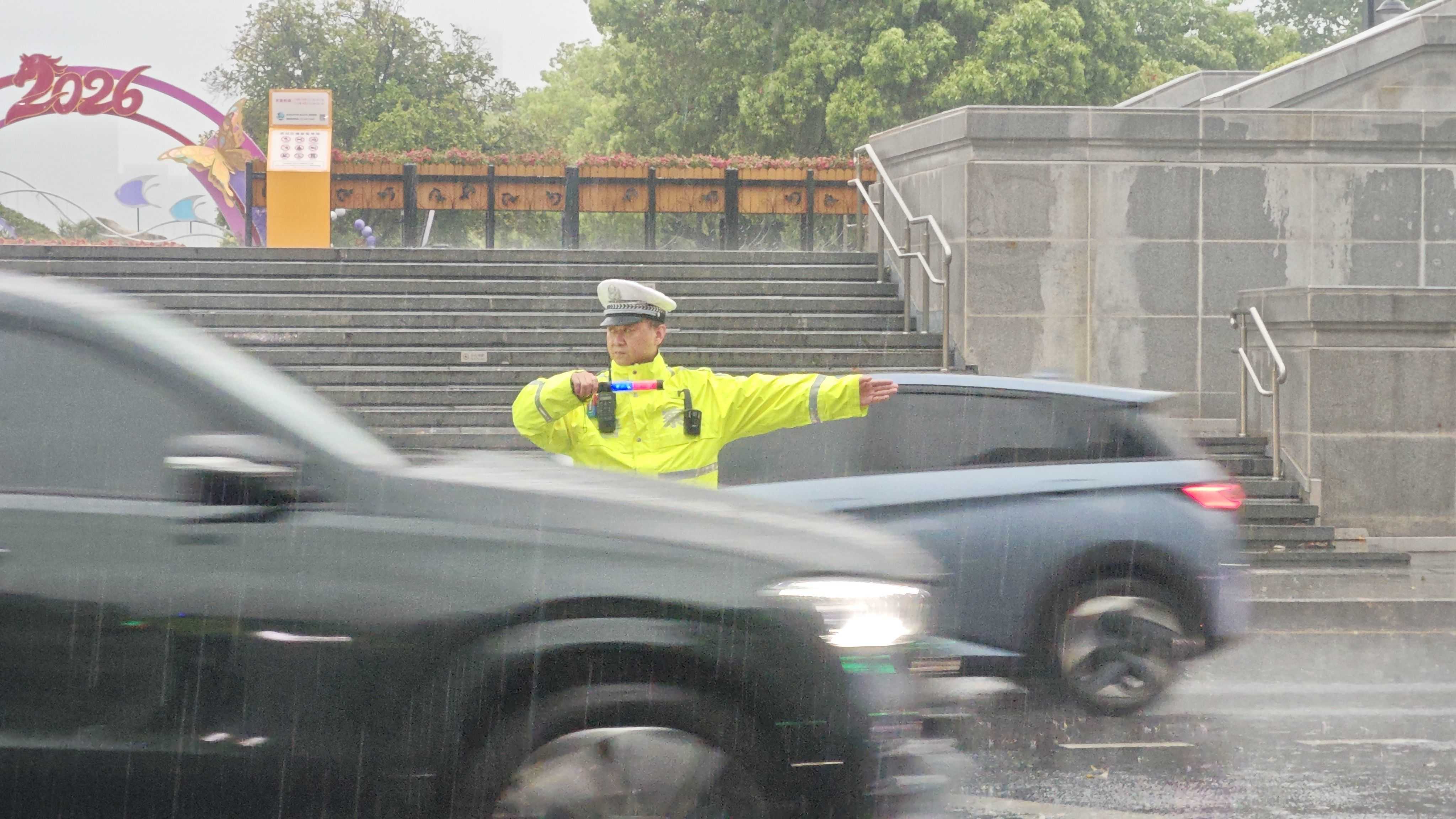 폭우가 갑자기 내리자, 우한 경찰 전원이 출동해 도시의 안전을 지켰다