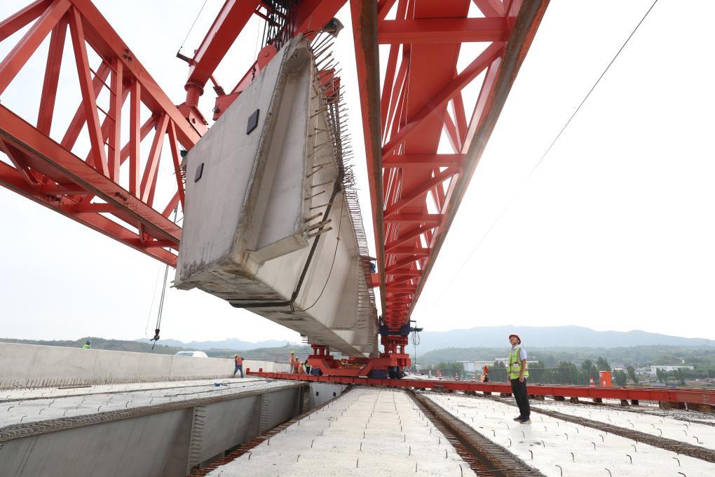1日、河北省石家荘市井陘(せいけい)県で行われている石太高速道路拡張プロジェクトの甘陶河大橋建設現場で、施工に当たる作業員。(北京=新華社配信/張暁峰)