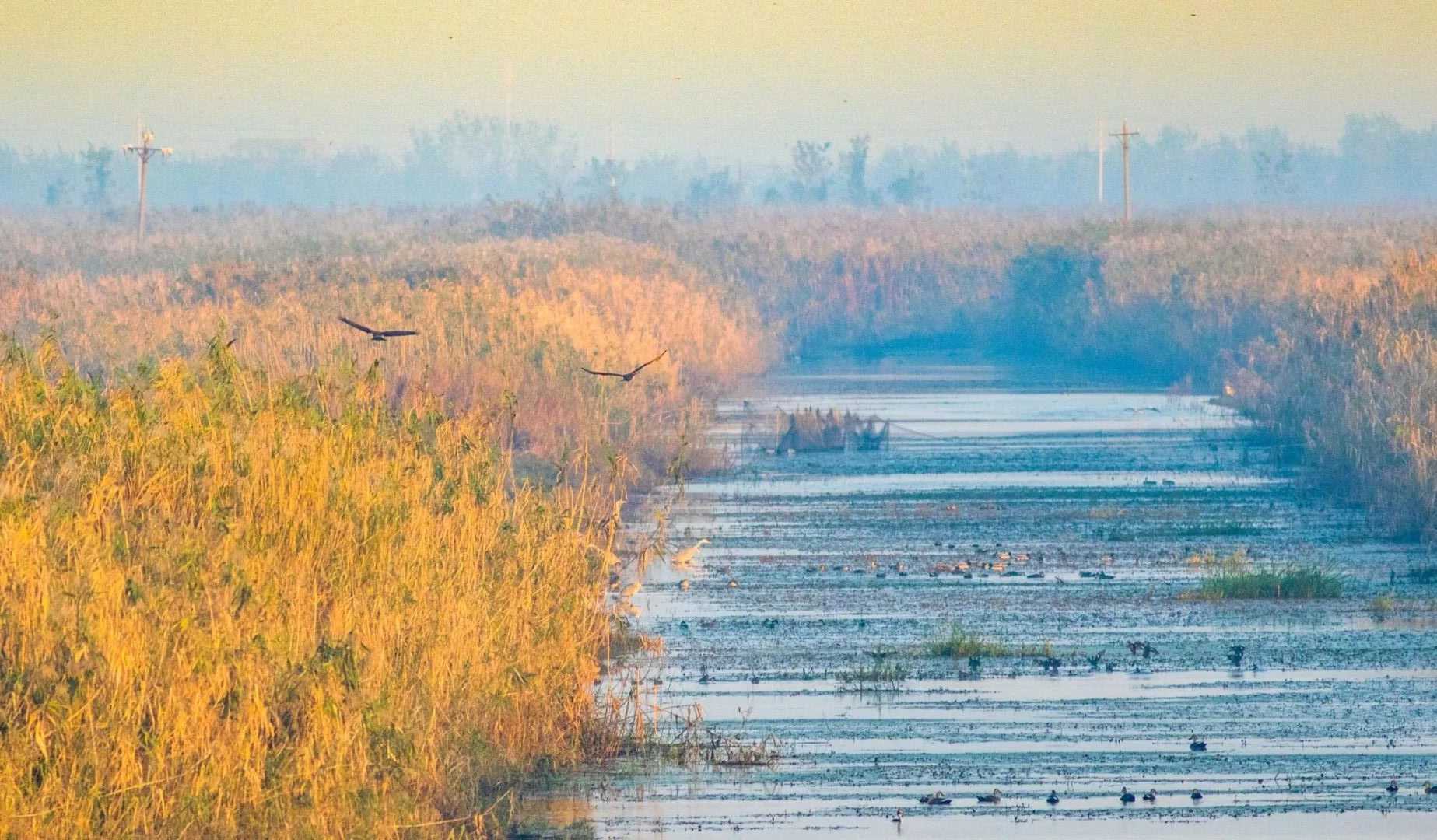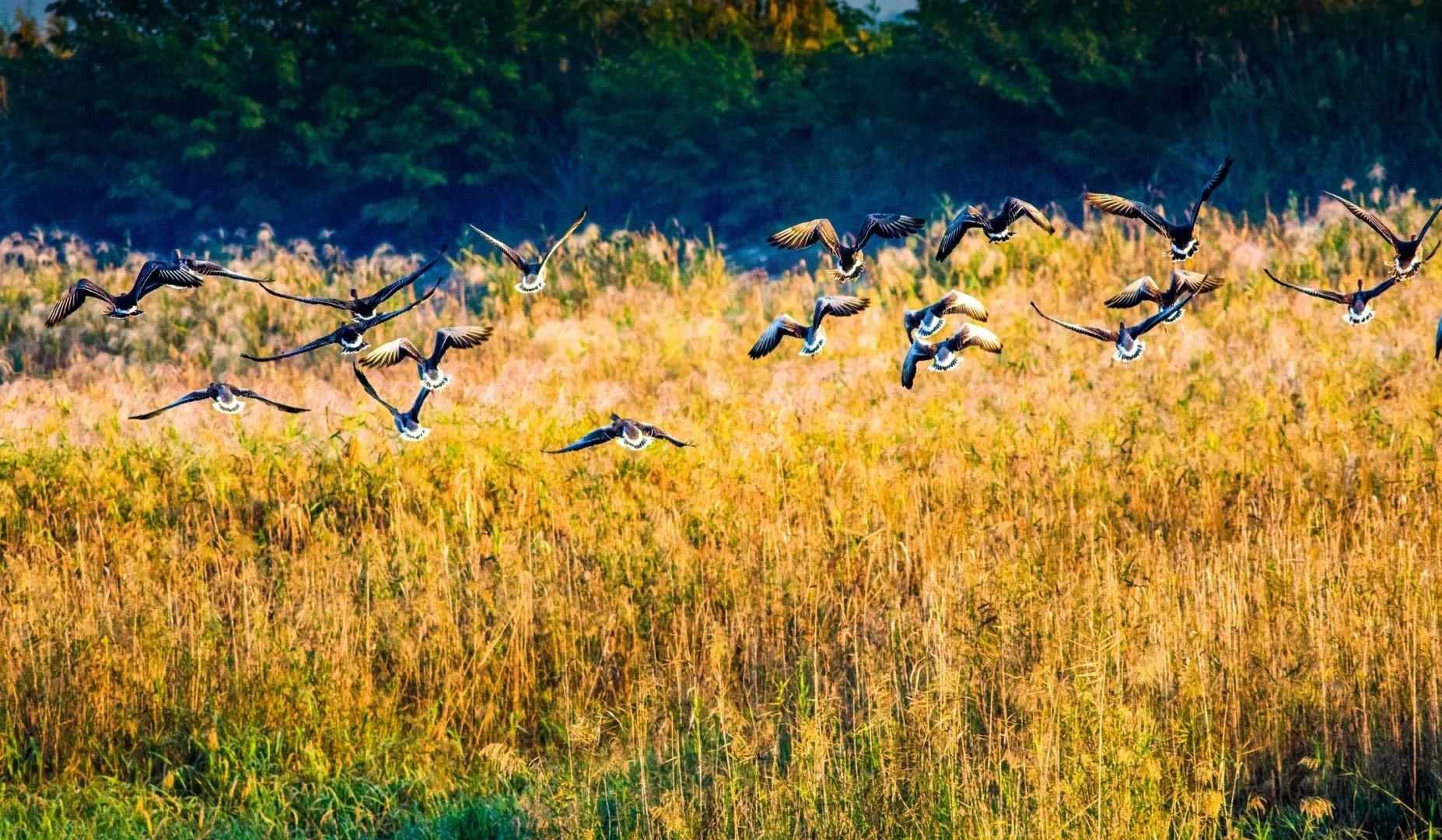 A flock of migratory birds are seen at the Chenhu Wetland Nature Reserve in Caidian District of Wuhan City, Hubei Province. As the only wetland of international importance in the city, the lake is an important stopping place on the East Asia-Australia migratory route of winter birds.