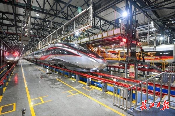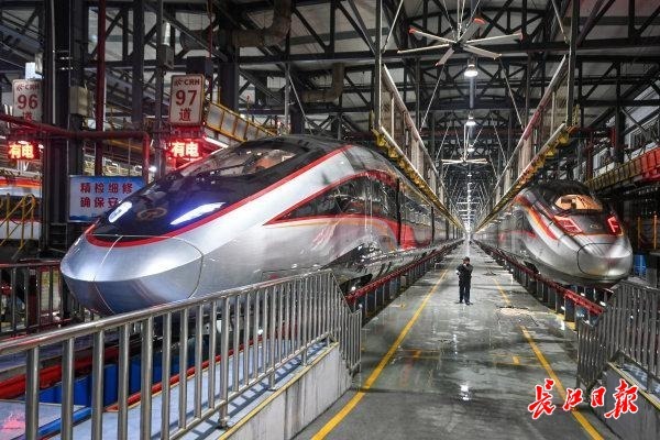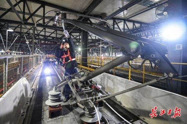 At 2:00 AM on February 1, the maintenance workshop of Wuhan EMU Depot was brightly lit and bustling with activity. Ground mechanics Li Wenju and his colleagues were carrying out comprehensive inspections in a tense yet orderly manner on the bullet trains returning to the depot one after another.
