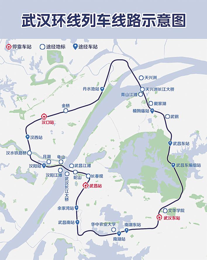 So far, all three major railway stations in Wuhan - the Hankou Railway Station, Wuhandong Railway Station and Wuchang Railway Station - have offered loop train services. With just six yuan, passengers can now complete a trip across the three towns of the city in approximately two hours.