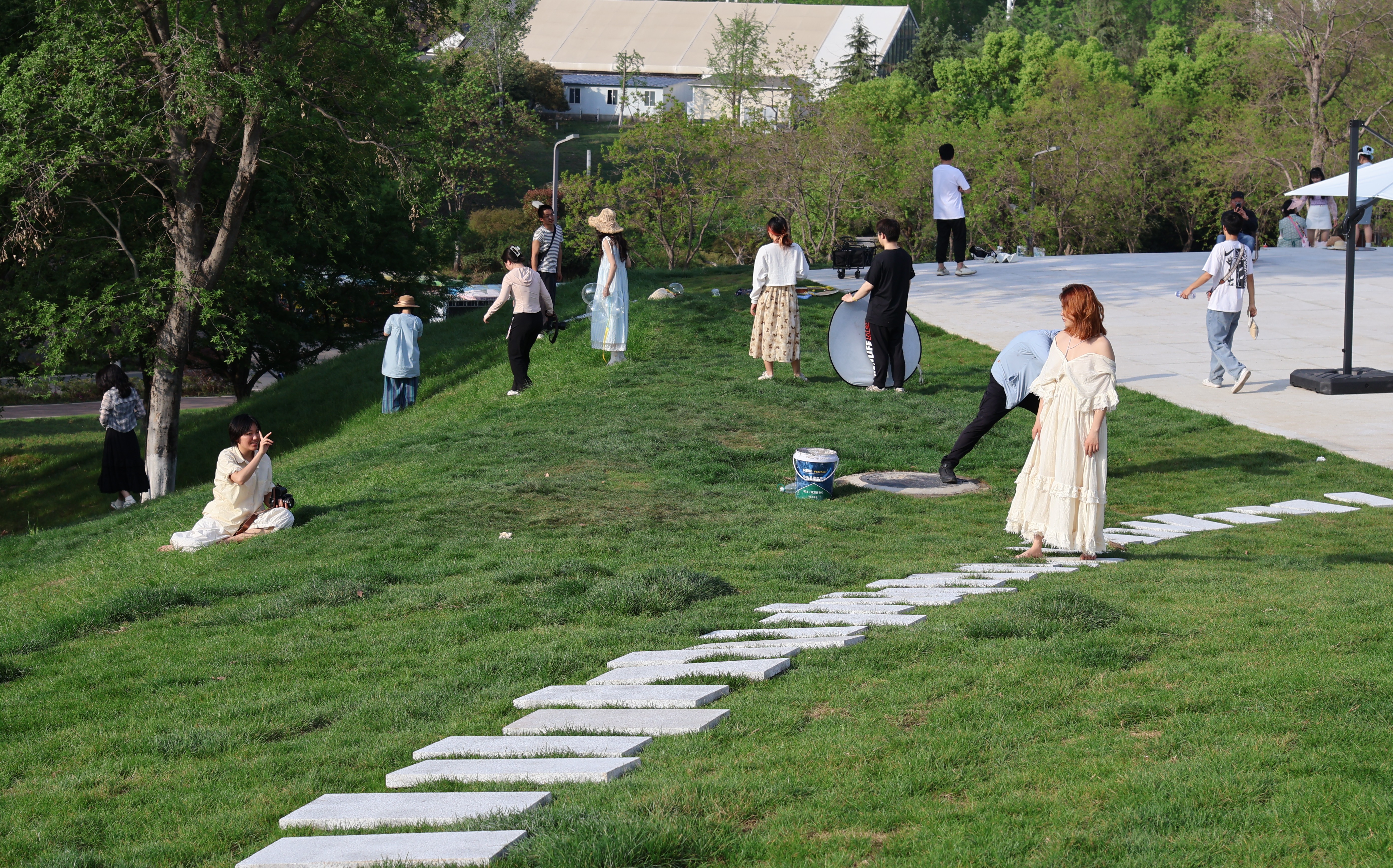 住在附近的一位女居民表示,以前,北门区域的游客比较少,3月底这栋建筑外观基本成型后,打卡的人开始日益增多。“其实我们也希望园博园的绿意不要被太多建筑填满,小型的白房子设计很不错,这也是更贴近自然的做法。”她说。