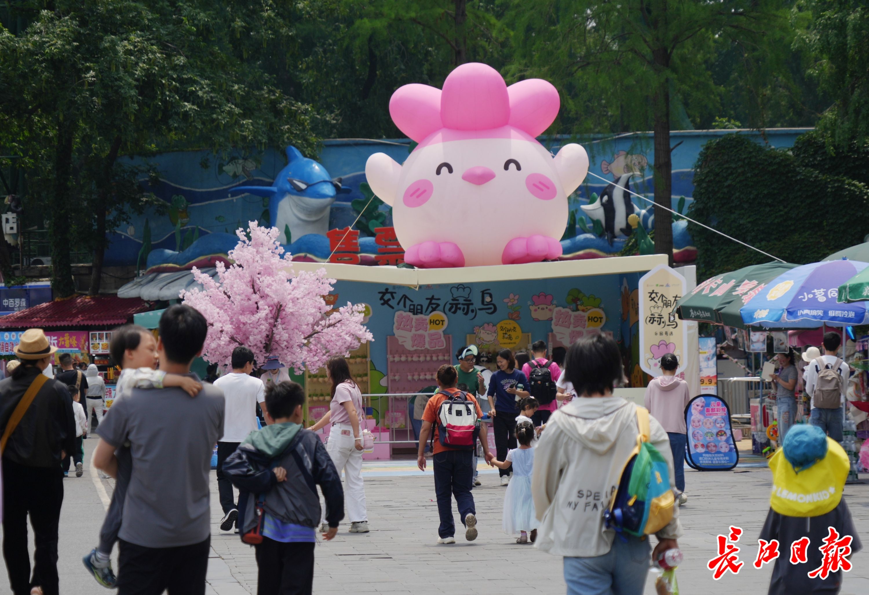 亲子家庭来到东湖海洋乐园,欢度假期。