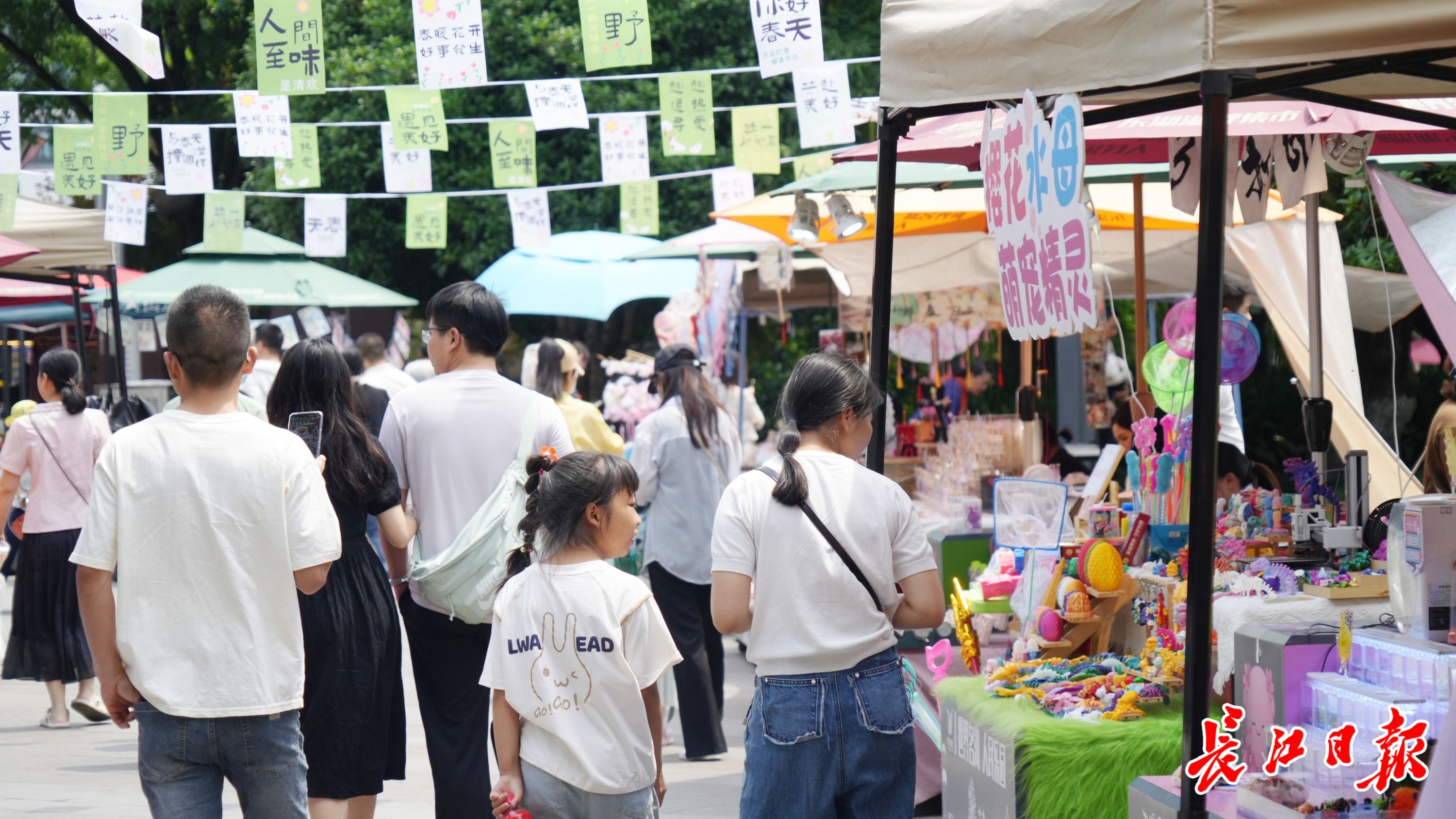 游客在东湖绿道湖光序曲广场游览文创市集。