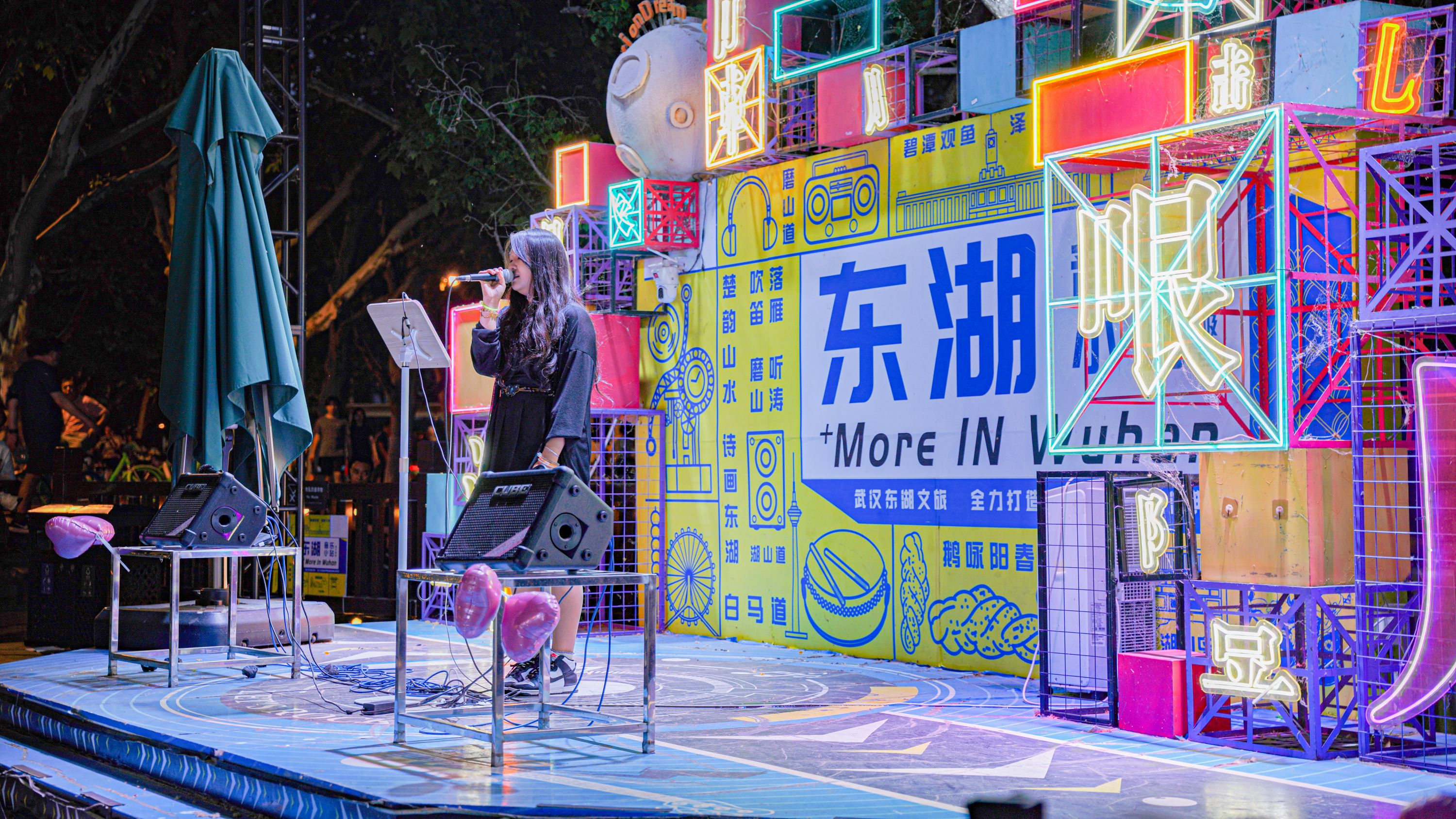 东湖绿道音乐小站,假日每晚为游客带来音乐演出。