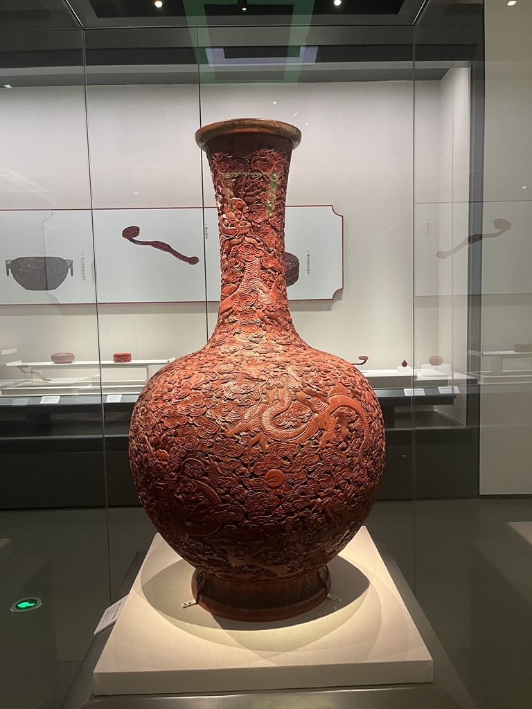 清乾隆剔红云龙纹天球瓶,旧金山亚洲艺术博物馆馆藏。