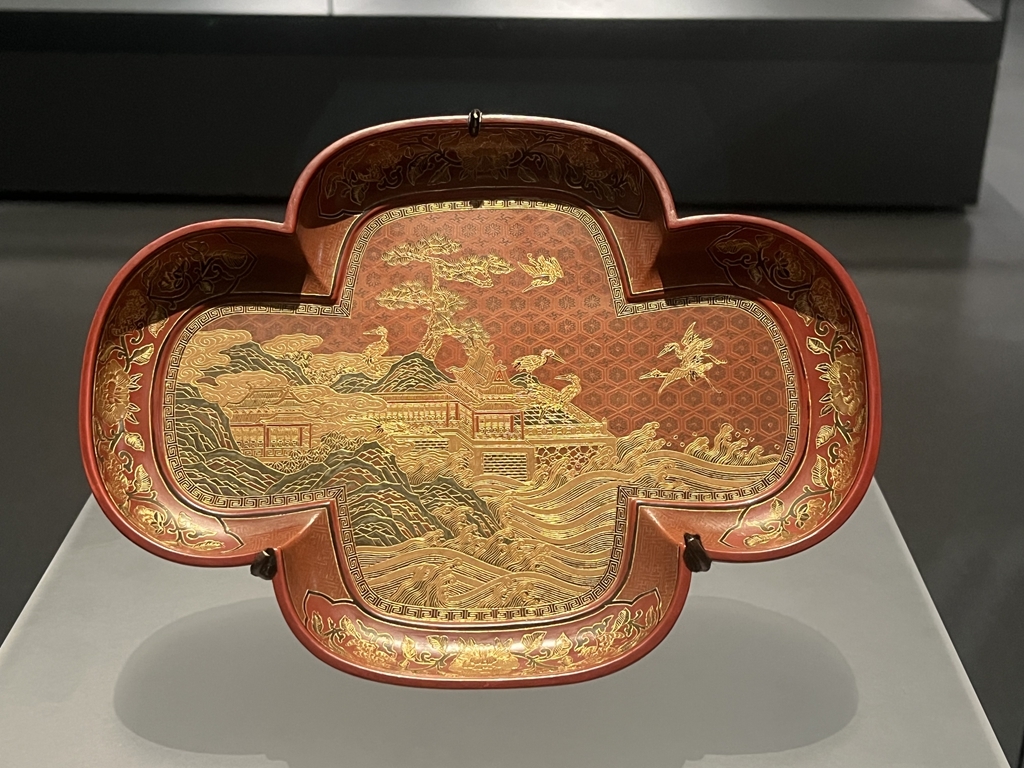 乾隆款朱漆戗金填彩海棠仙盘,旧金山亚洲艺术博物馆馆藏。