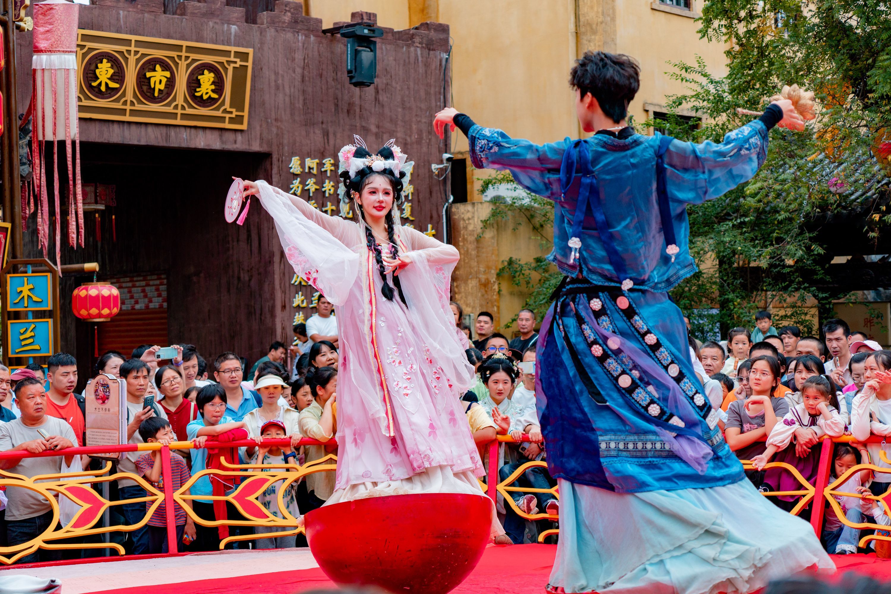 由乌镇戏剧节原班团队带来的全国首部高跷魔法剧《大魔法师》成为最大亮点,“非洲鼓圈”互动、“百人手鼓派对”则让游客沉浸式体验异国风情。