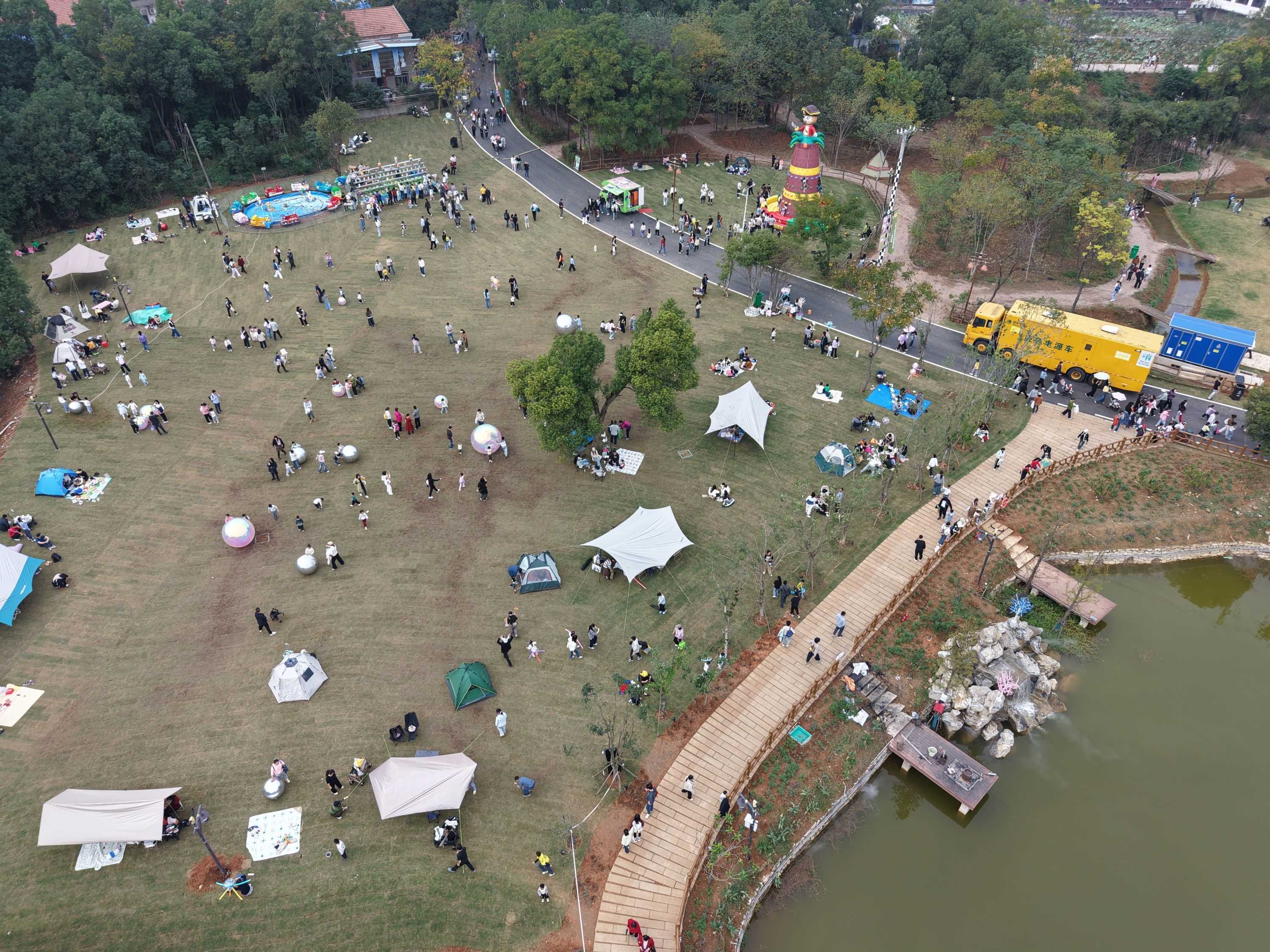 运动村近一半面积是开阔的草坪,市民游客在此野餐、露营。