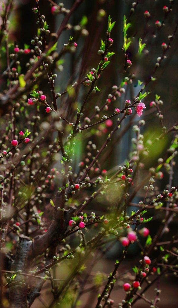 温室催发的桃花。