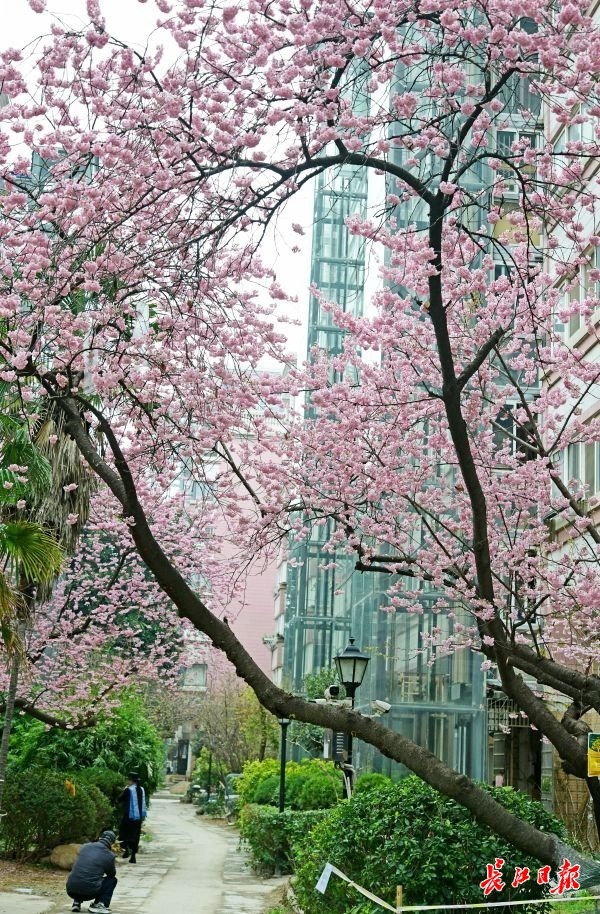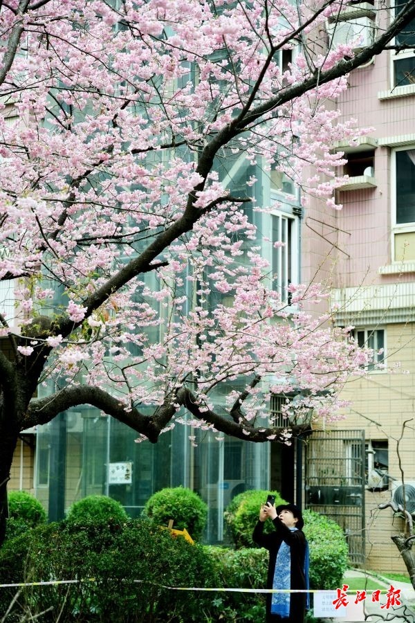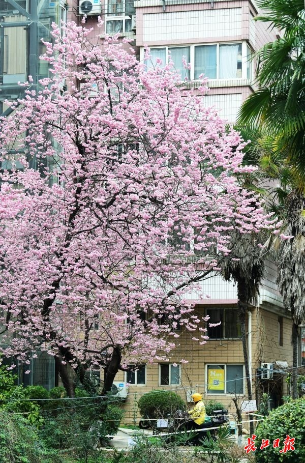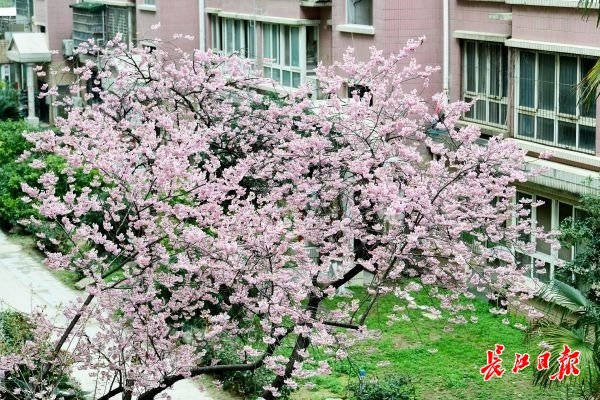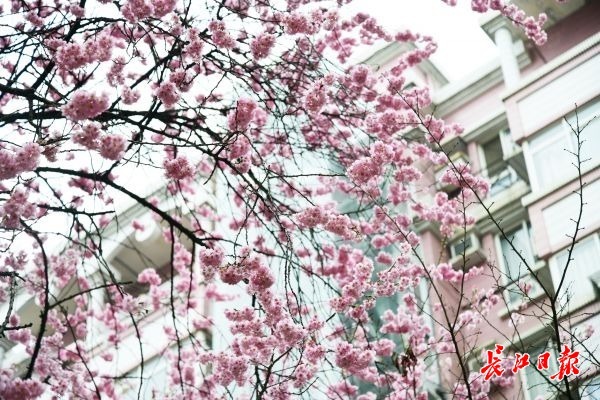 2月25日,武汉汉阳区鹦鹉花园小区里的几株早樱花开正盛,小区居民们不用去公园就可以在家门口赏樱。小区物业负责人介绍,这几株早樱和小区“同岁”,种植至今已经有近30年。每年由区园林部门指导专门对小区的苗木养护。由于这几株早樱树花开形态好,也吸引了不少赏花客前来拍照留影。小区物业提醒,由于景观位于居民小区,请赏花客文明赏花,不要影响居民正常生活。